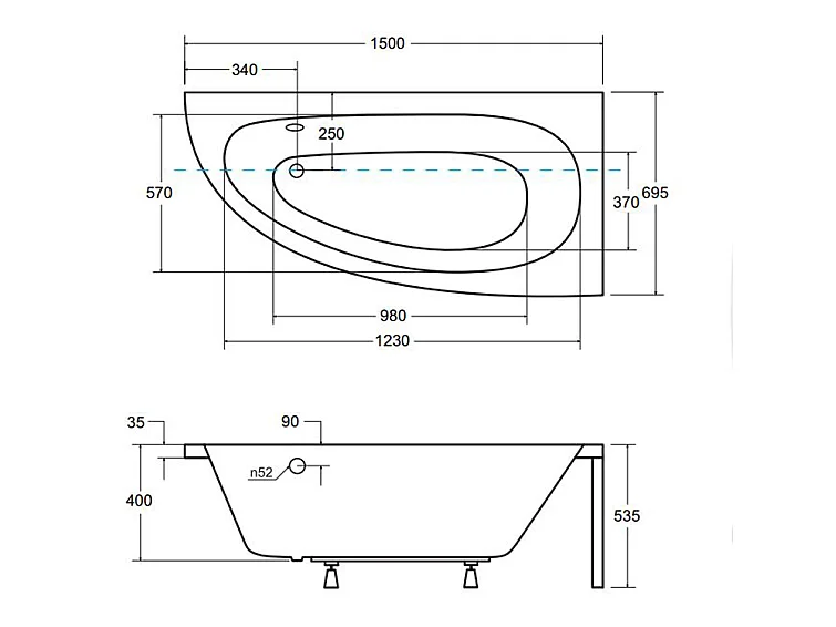 Badewanne Eckwanne MILENA 150x70 Rechts mit AcrylSchürze | Ablauf & Füße GRATIS !