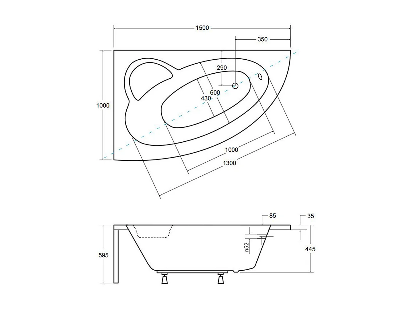 Badewanne Eckwanne NATALIA PREMIUM 150x100 Rechts | Ablauf & Füße GRATIS !