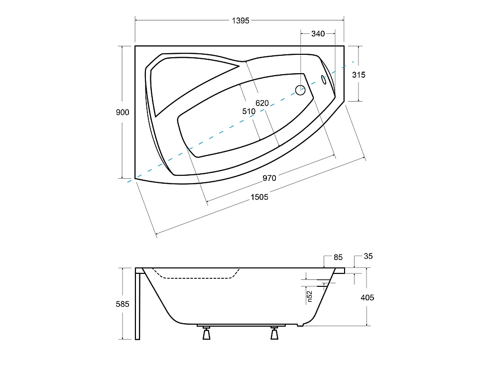 Badewanne Eckwanne RIMA 140x90 Links mit weißer Kopfstützen | Ablauf & Füße GRATIS !