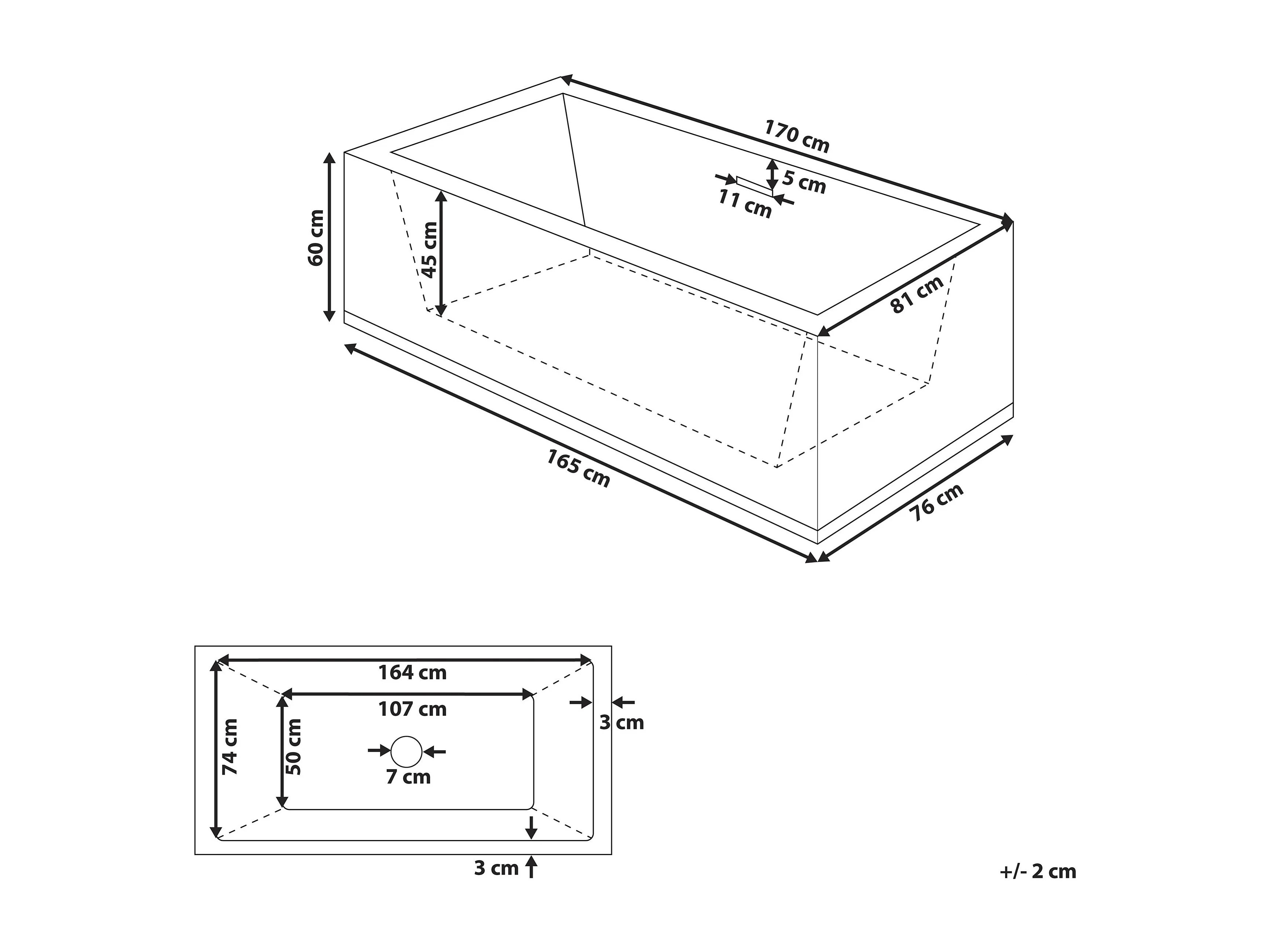 Acryl Badewanne rechteckig freistehend schwarz mit Überlauf 170 x 81 cm Rios