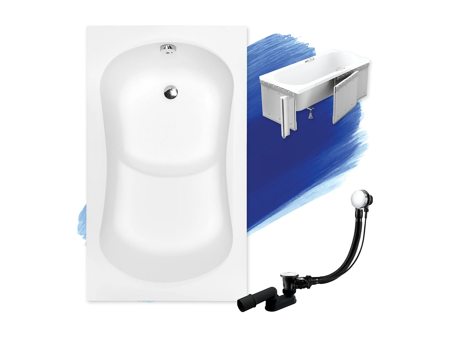 Badewanne Rechteck ARIA REHAB 120x70 mit Styroporverkleidung | Ablauf & Füße GRATIS !