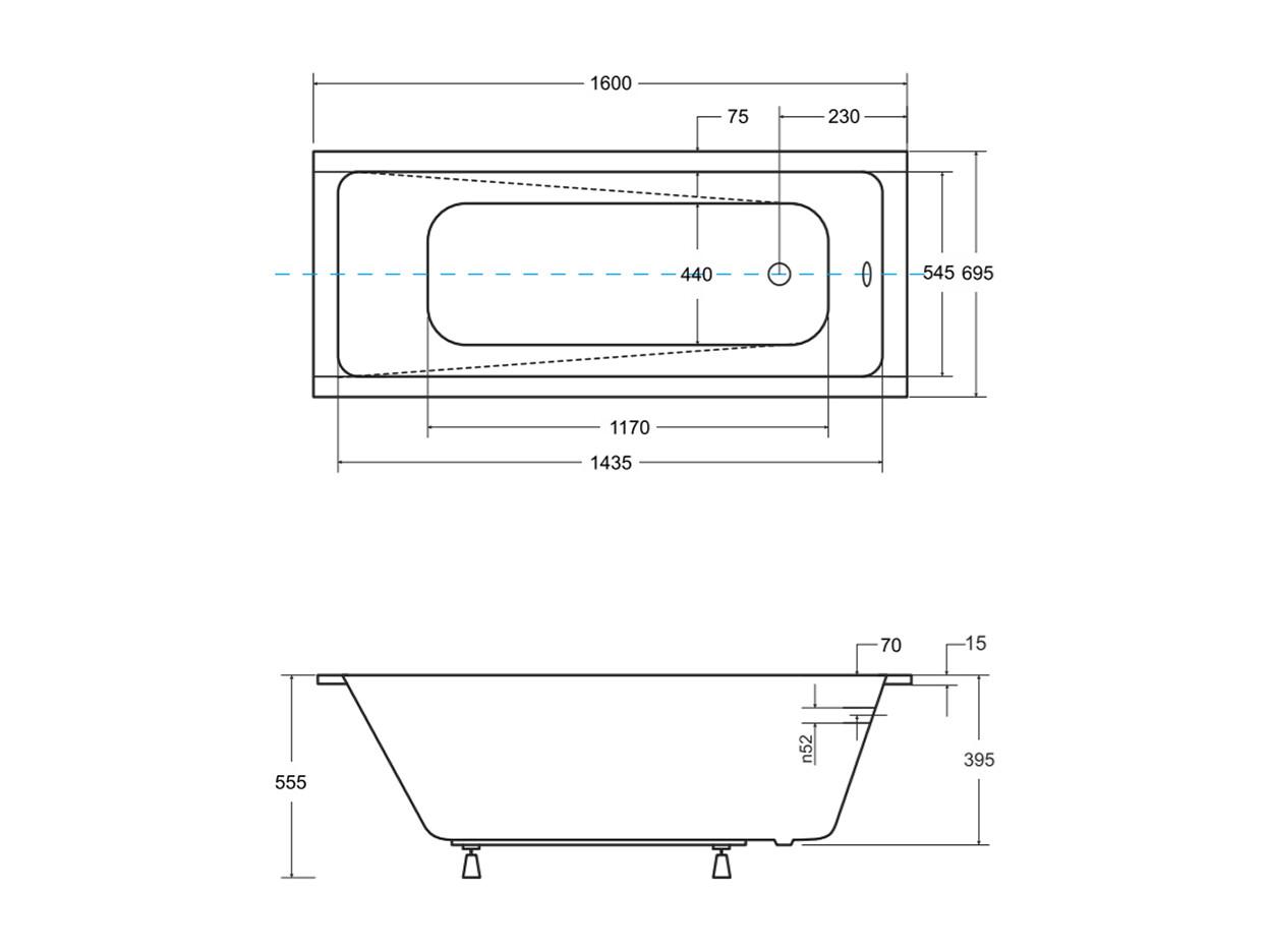 Badewanne Rechteck BONA 160x70 | Ablauf & Füße GRATIS !