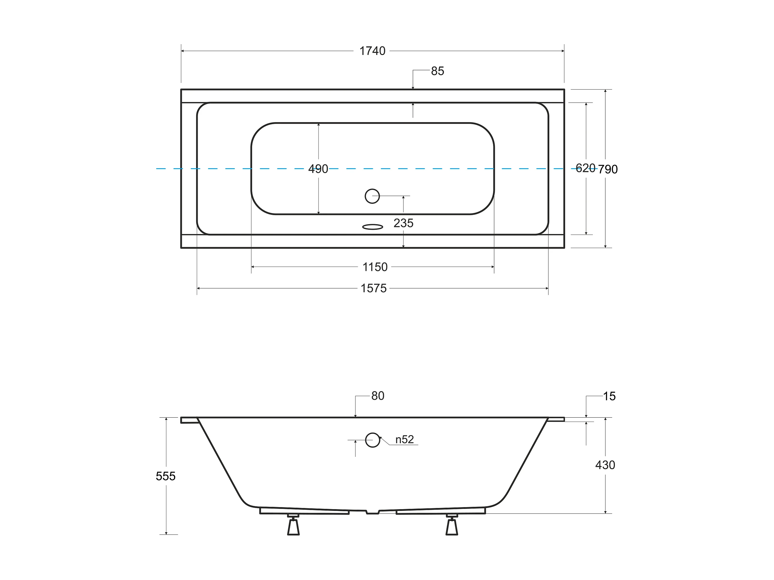 Badewanne Rechteck QUADRO SLIM 175x80 | Ablauf & Füße GRATIS !