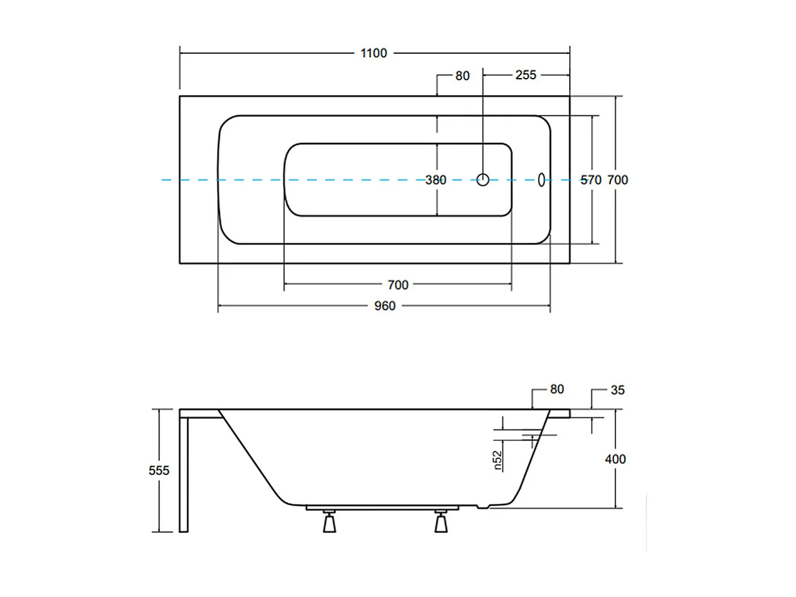 Badewanne Rechteck TALIA 110x70 | Ablauf & Füße GRATIS !