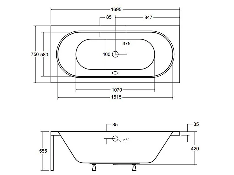 Badewanne Rechteck VITAE 170x75 mit AcrylSchürze | Ablauf & Füße GRATIS !