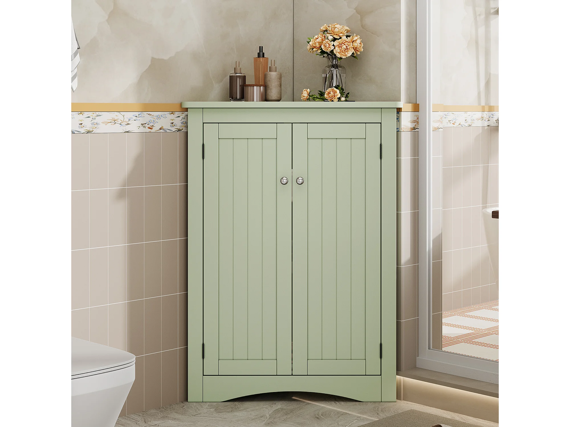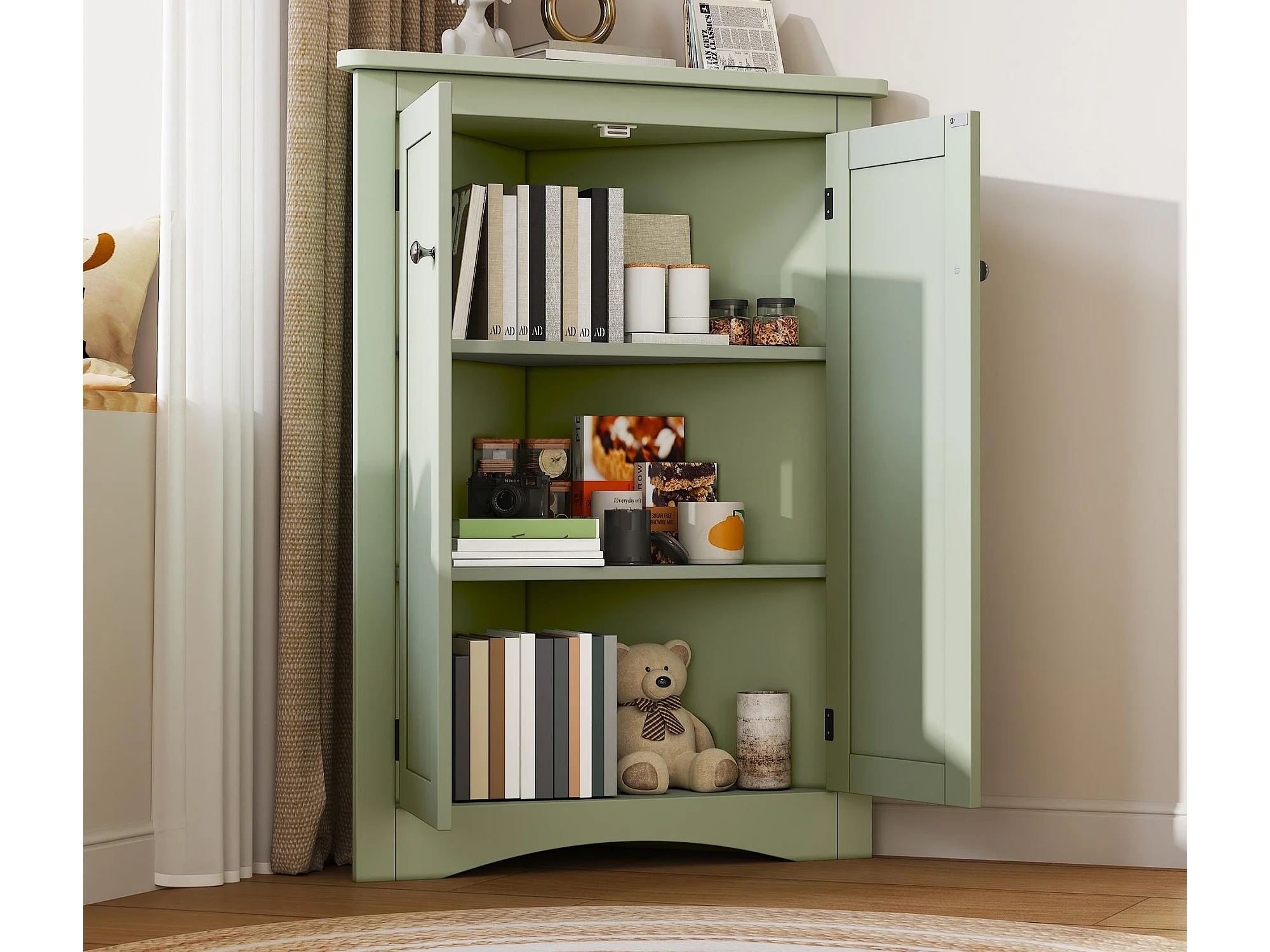 Badezimmer-Ecksäule - mit 2 Türen - mit 3 Regalböden - höhenverstellbare Regalböden - Grün