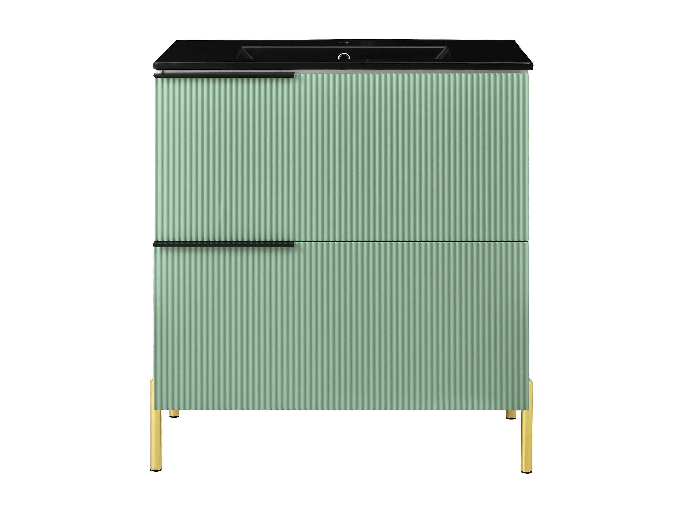 Badezimmer-Waschtisch mit Keramikwaschbecken – 81,5 x 47 x 90 cm – mit 2 Schubladen – MDF – grün