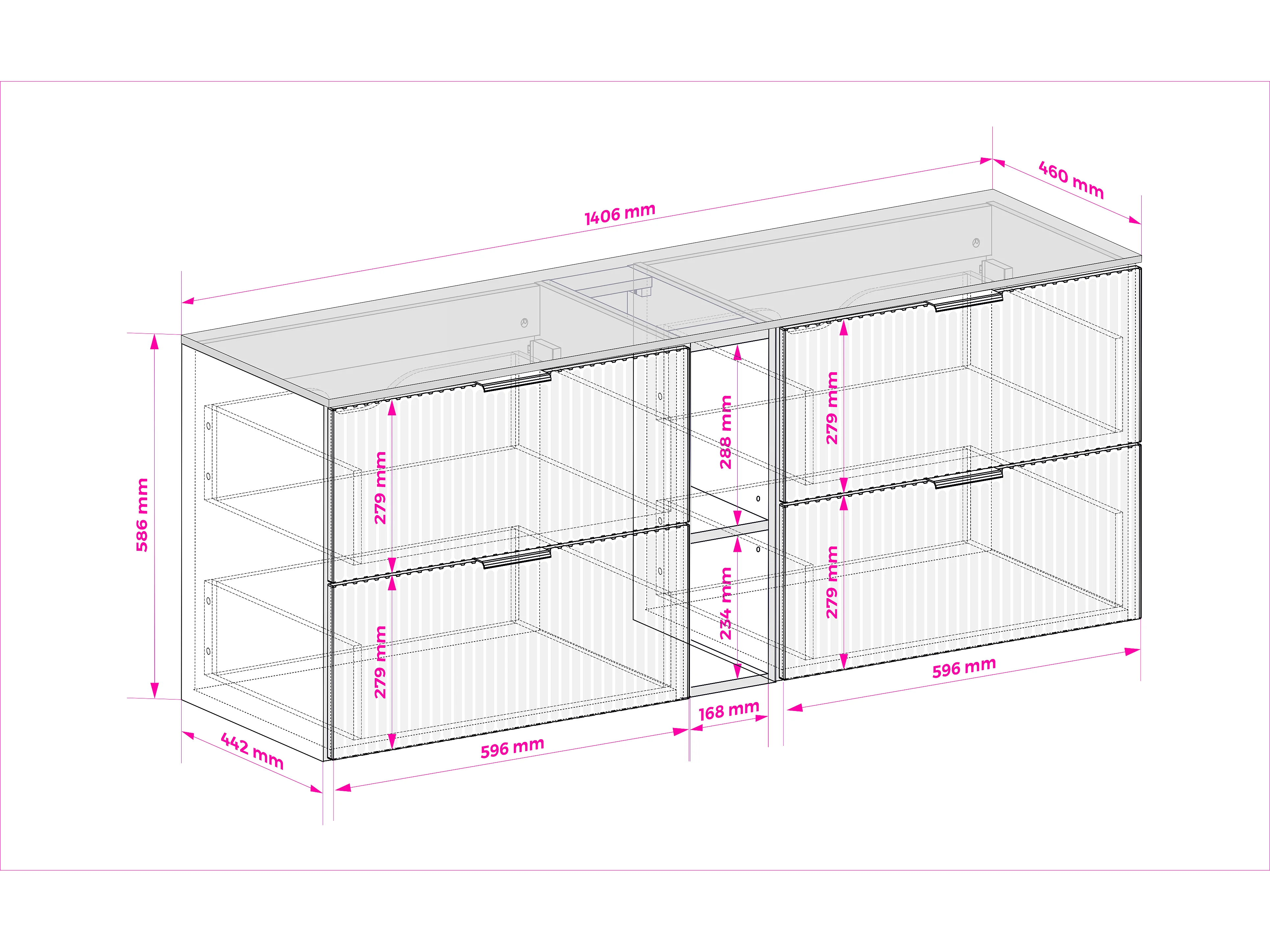 Waschtischunterschrank, Kaschmir/Eiche mit schwarzem Griff, 140 (2 x 60 + 20) x 77 x 46 cm + Arbeitsplatte, schwarze Beine
