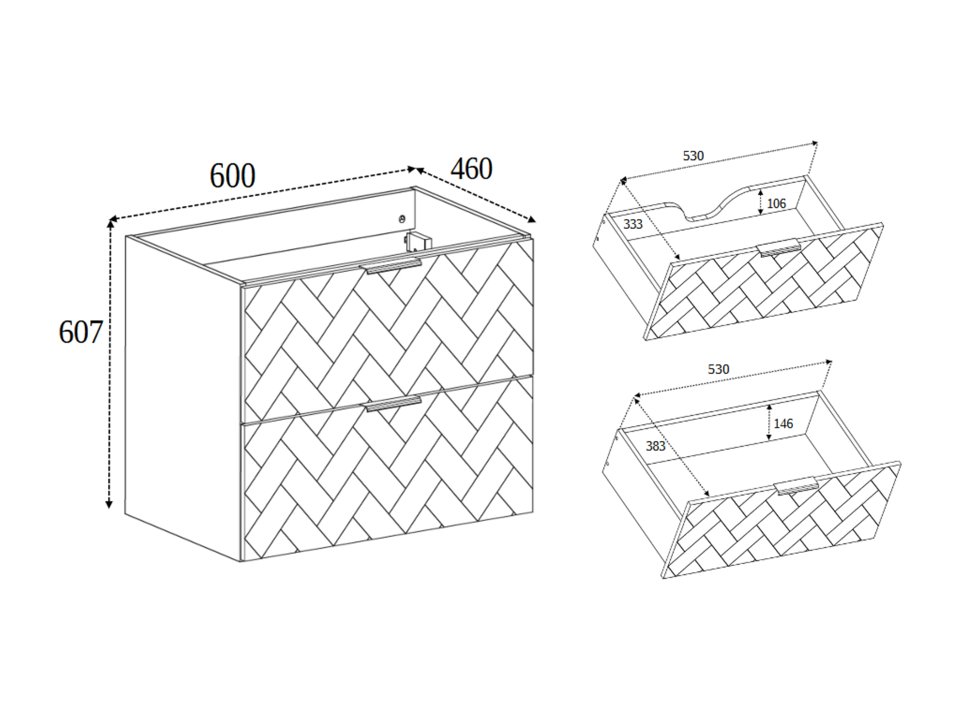 Badezimmermöbel, Mattweiß, 60 x 57 x 46 cm, silberne Griffe