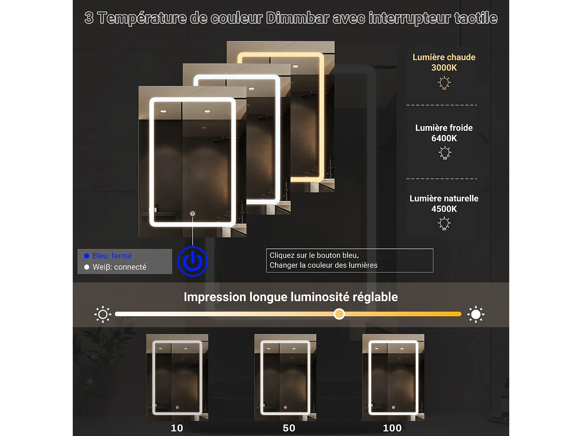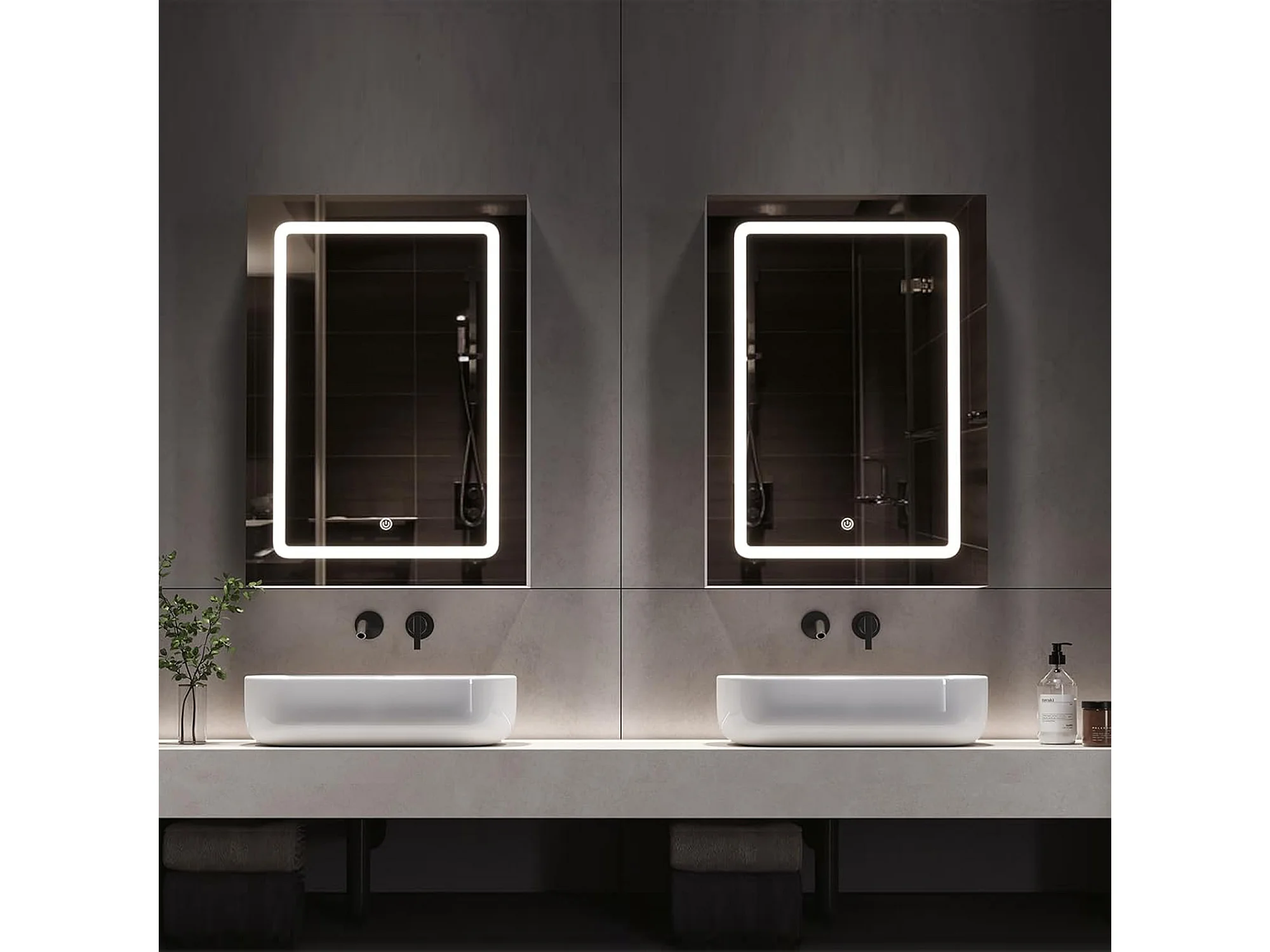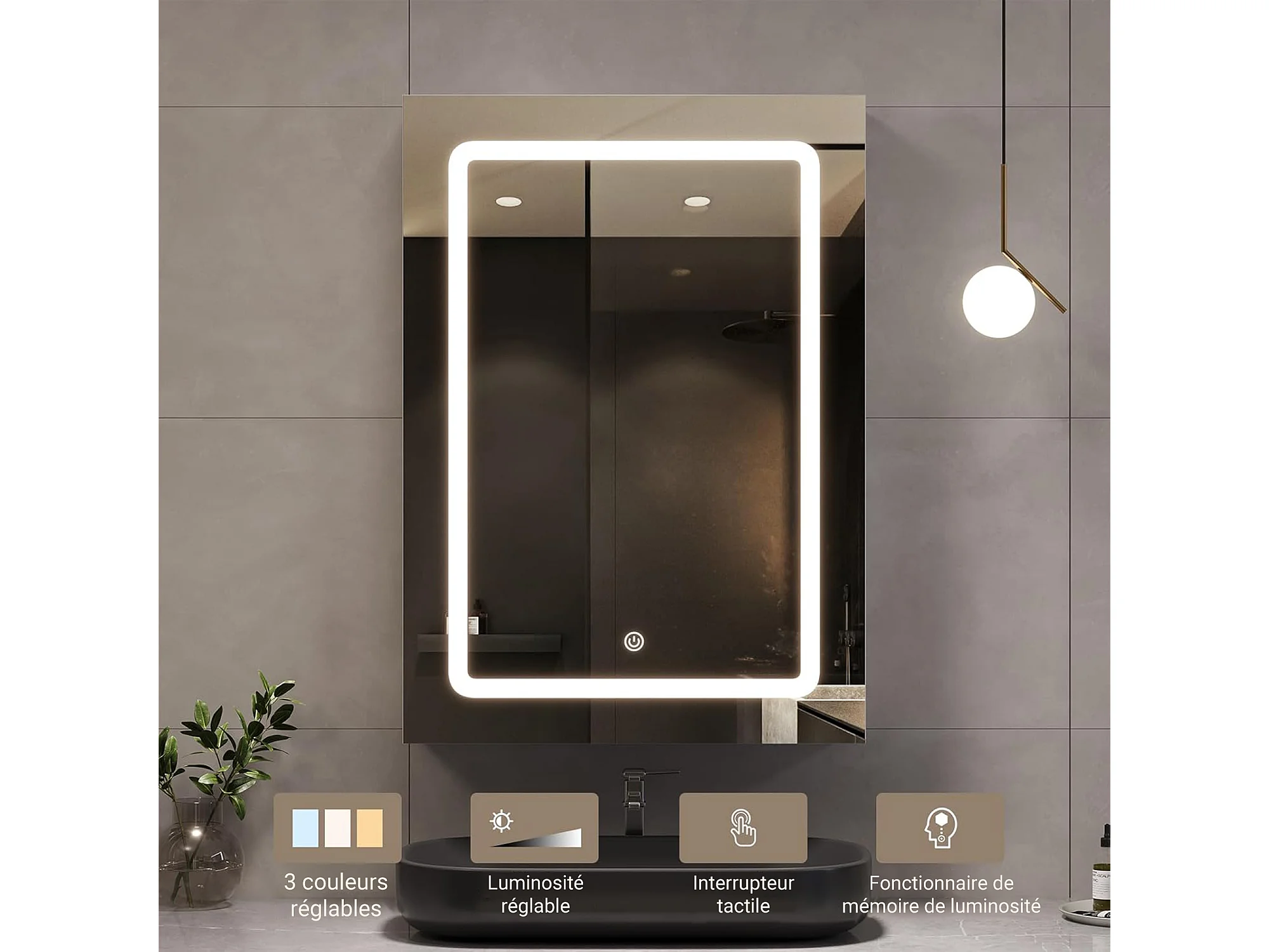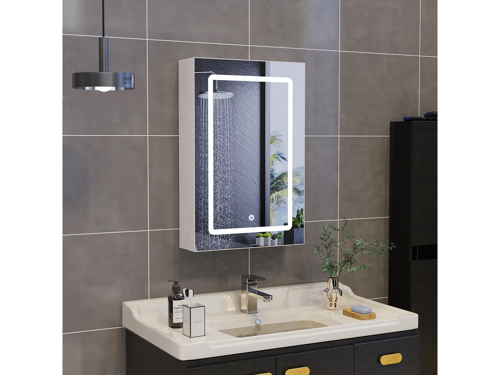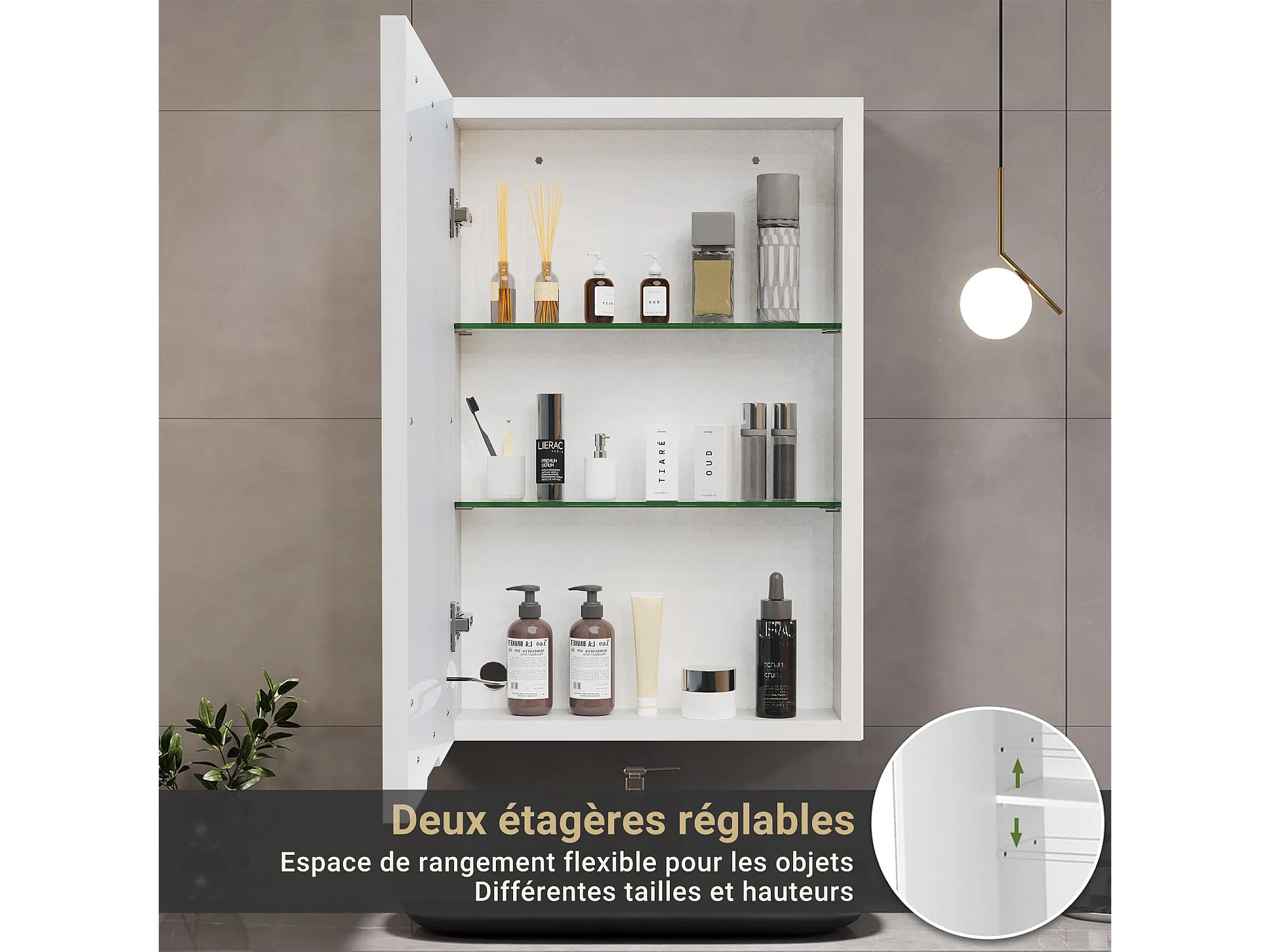 Badezimmerschrank zur Wandmontage mit Spiegel, LED, verstellbarem Regal - 70x15x60 cm Weiß