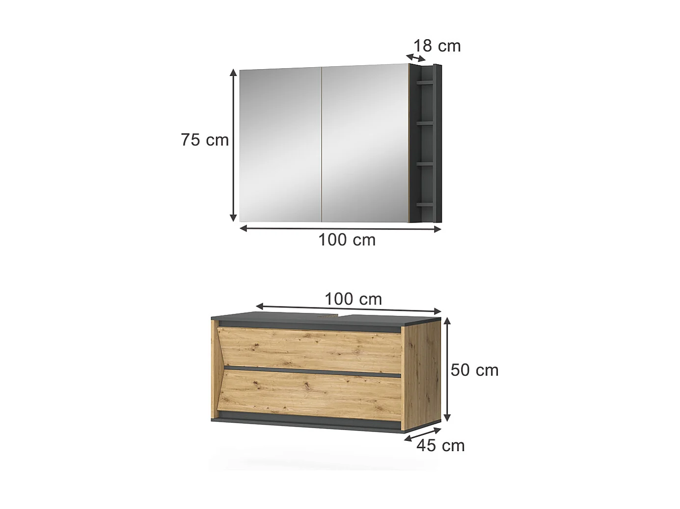 Badmöbel-Set anthrazit/artisan 100x45x50 edelin