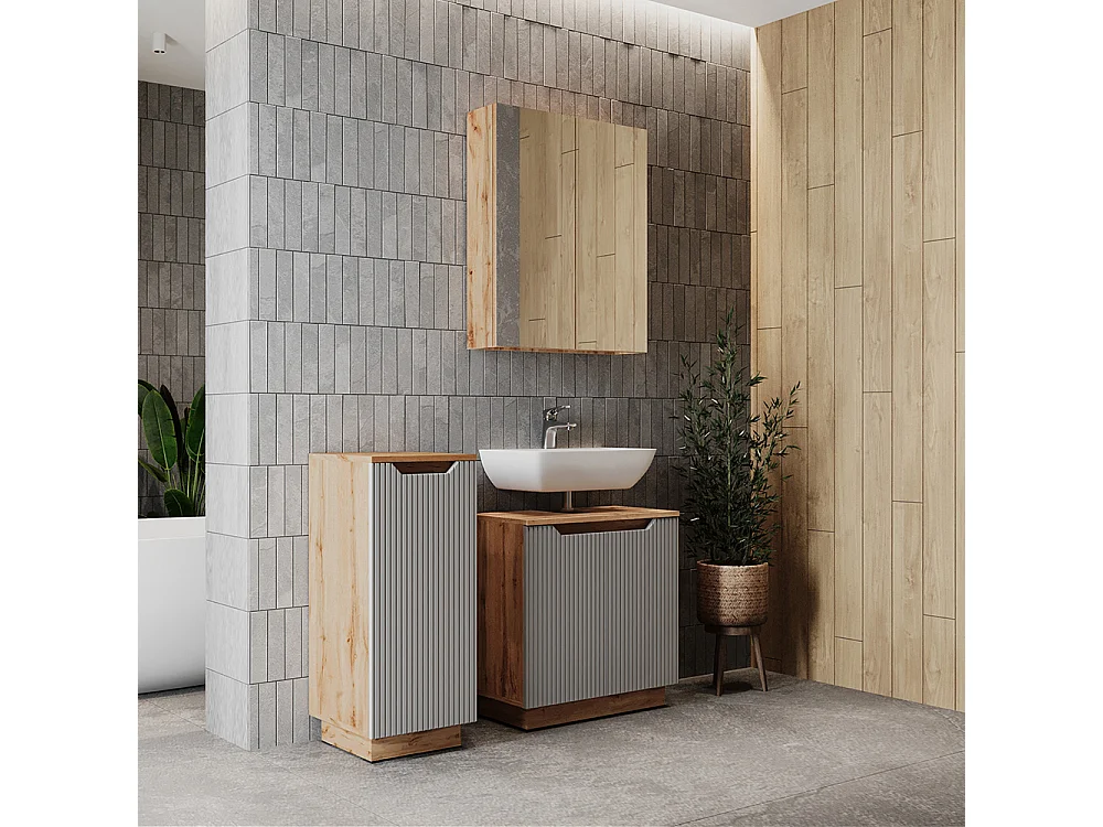 Badmöbel-Set eiche/grau gestreift 59.8x32x62.1 lotta