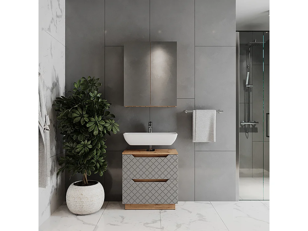Badmöbel-Set eiche/grau mit kachelstruktur 59.8x32x62.5 lotta