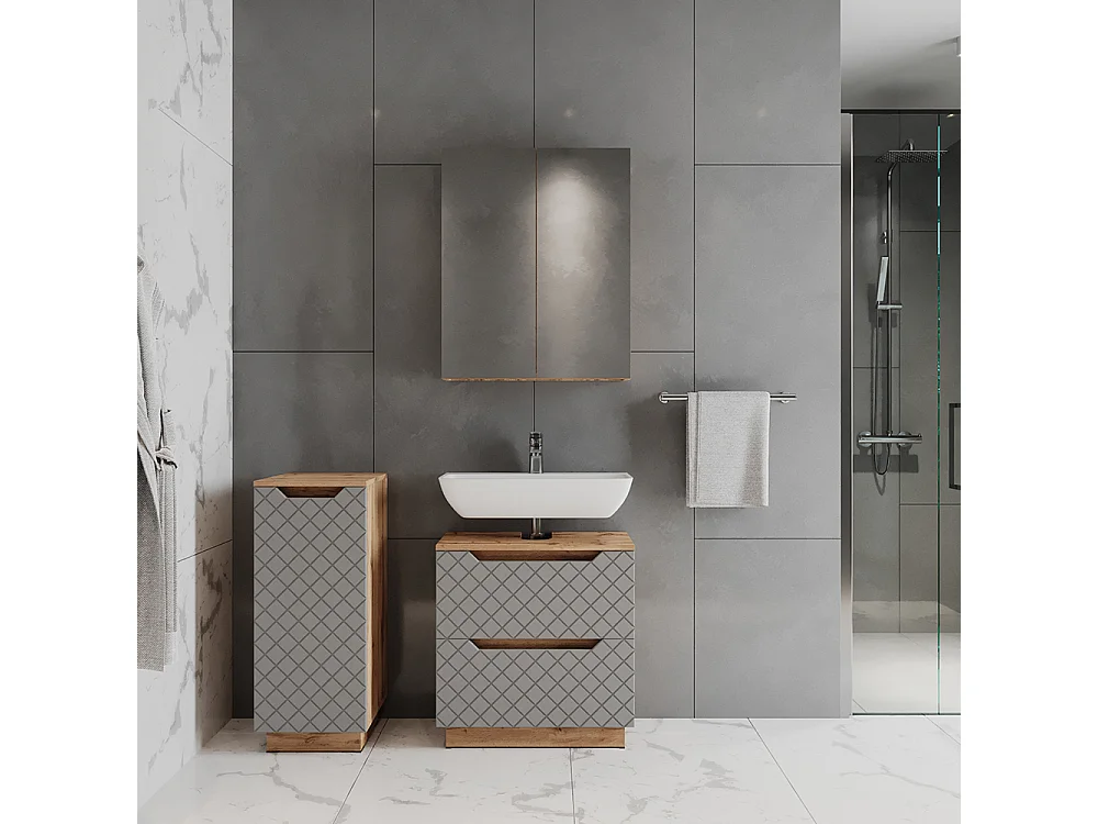 Badmöbel-Set eiche/grau mit kachelstruktur 59.8x32x62.5 lotta