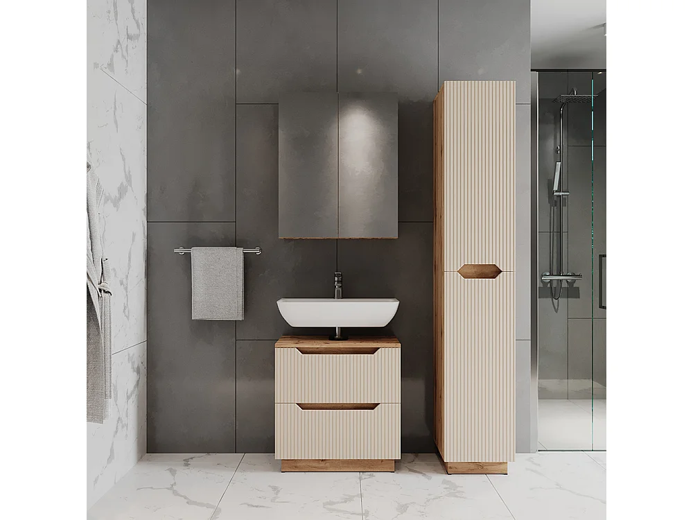 Badmöbel-Set eiche/kaschmir gestreift 59.8x32x62.5 lotta