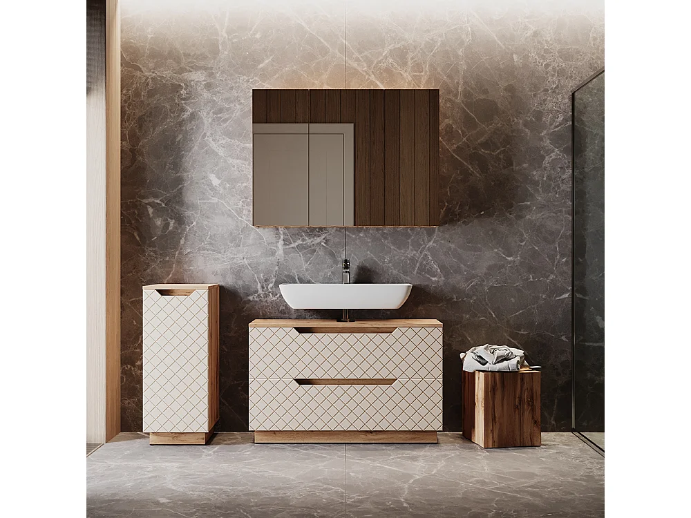 Badmöbel-Set eiche/kaschmir mit kachelstruktur 99.4x32x62.5 lotta