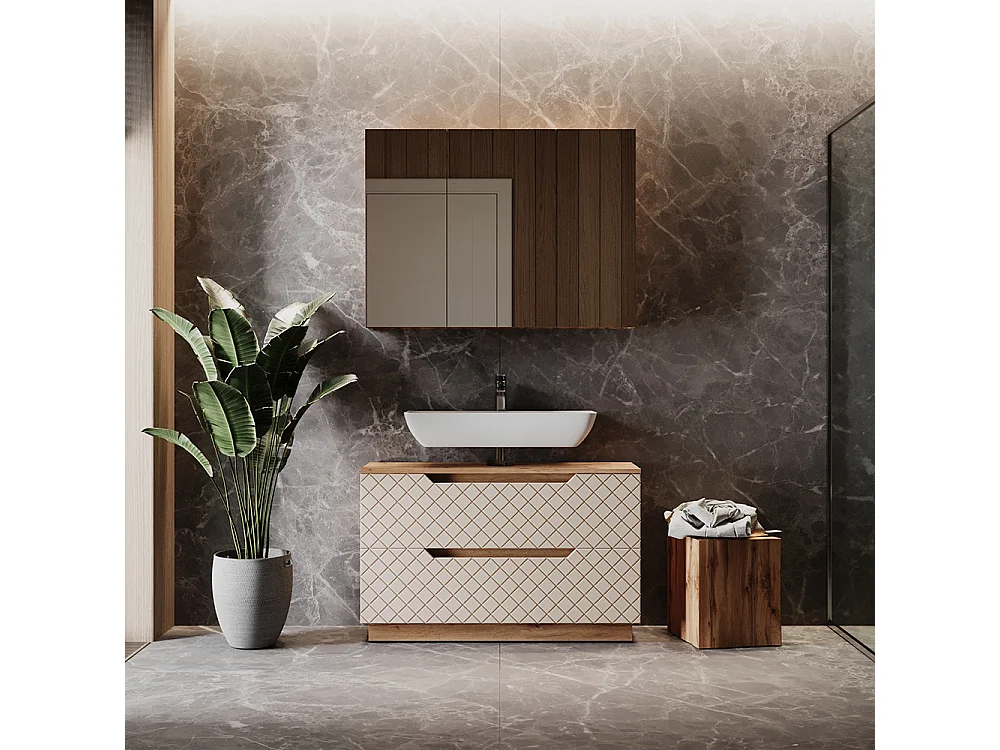 Badmöbel-Set eiche/kaschmir mit kachelstruktur 99.4x32x62.5 lotta