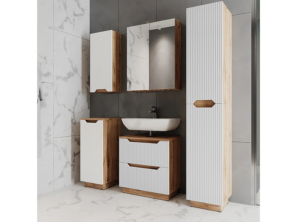 Badmöbel-Set eiche/weiß gestreift 59.8x32x62.5 lotta
