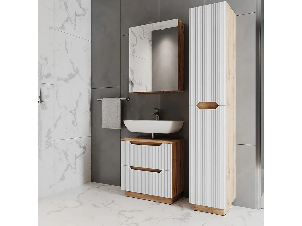 Badmöbel-Set eiche/weiß gestreift 59.8x32x62.5 lotta