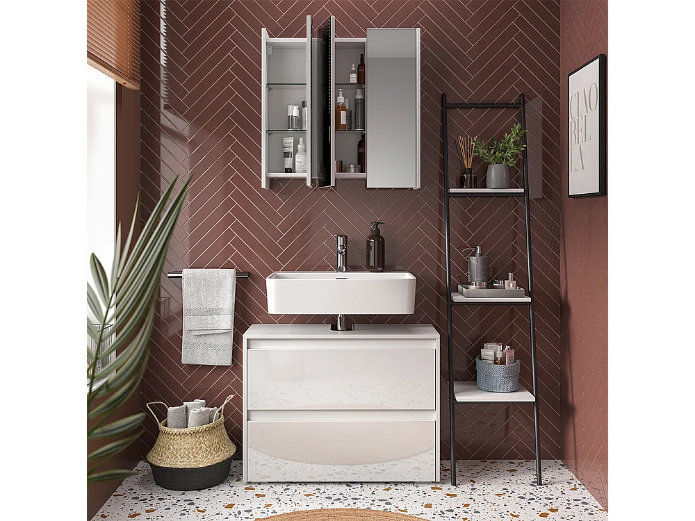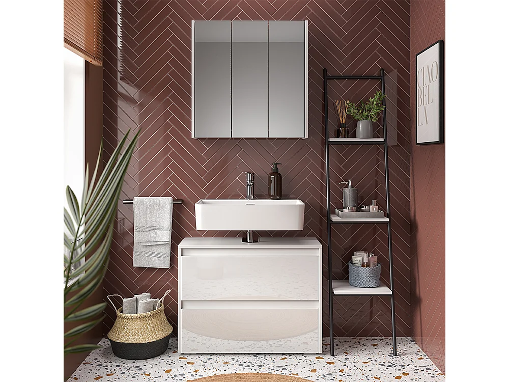 Badmöbel-Set weiß/weiß hochglanz 80.1x30.1x62 majest