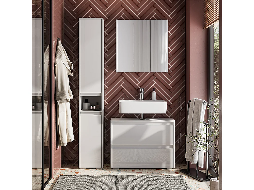 Badmöbel-Set weiß/weiß hochglanz 80.1x30.1x62 majest