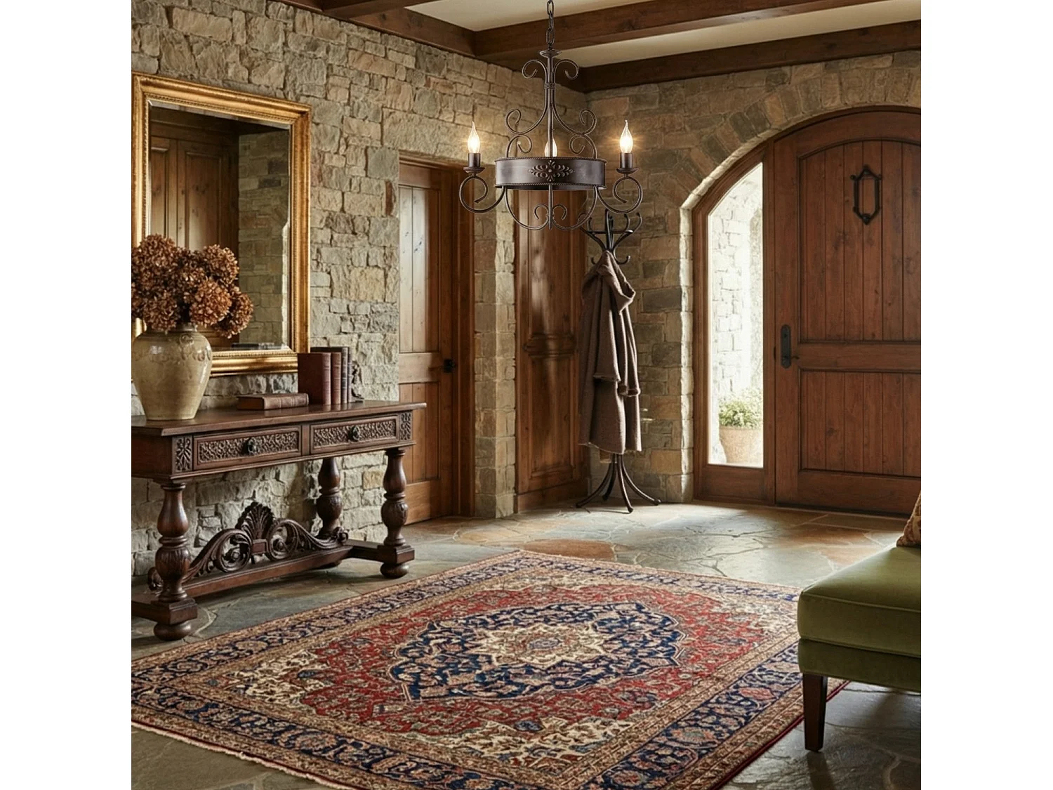 Bonetti Illumina - Baltimore - Kronleuchter aus schwarz und rostlackiertem Eisen, 3 Lichter 113 - Ø54 - BL183-3-RG