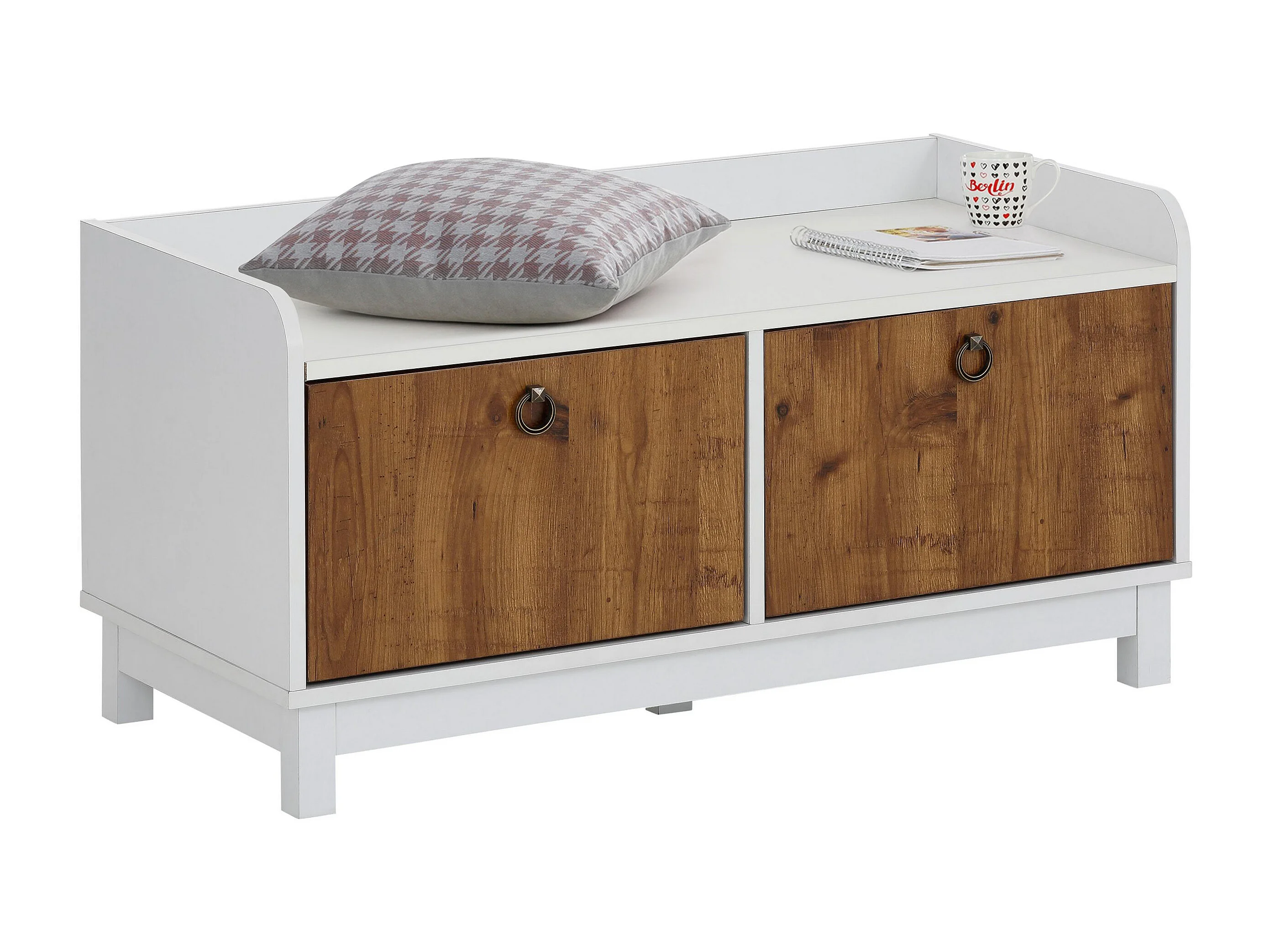 Bank mit 2 Türen in MDF-Weiß und Pazifischer Eiche
