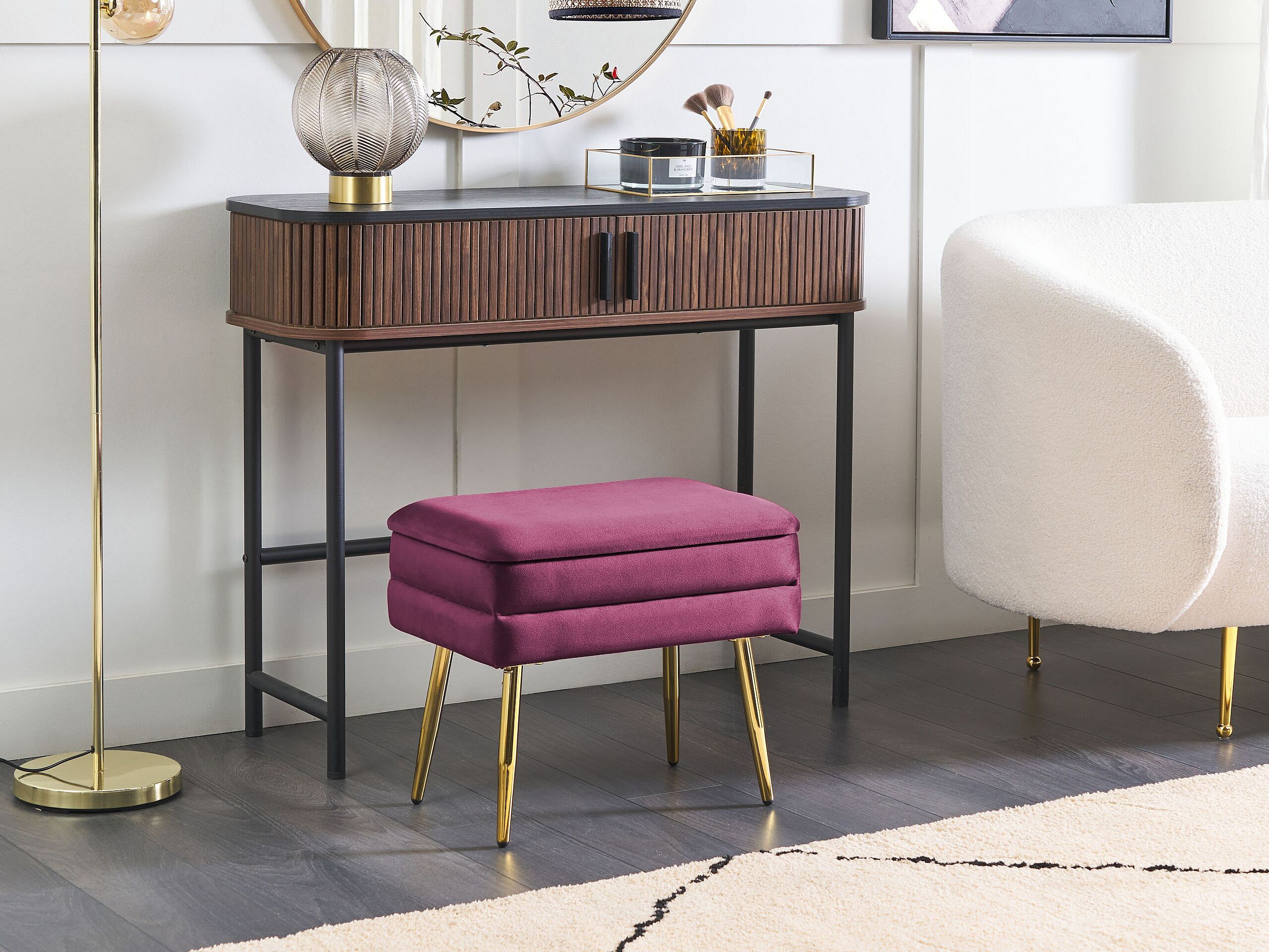 Bank mit Stauraum aus Samtstoff rot burgund mit goldenen Metallbeinen Odessa