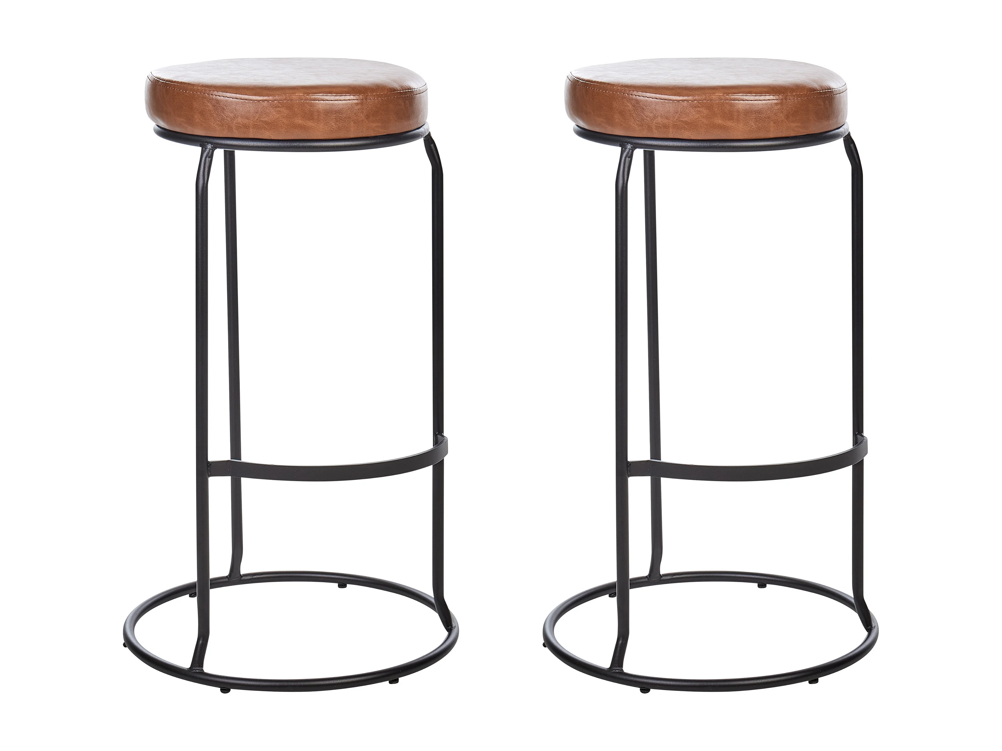 Barhocker 2er Set Kunstleder Braun ohne Lehne mit Fußstützen Retro Milroy