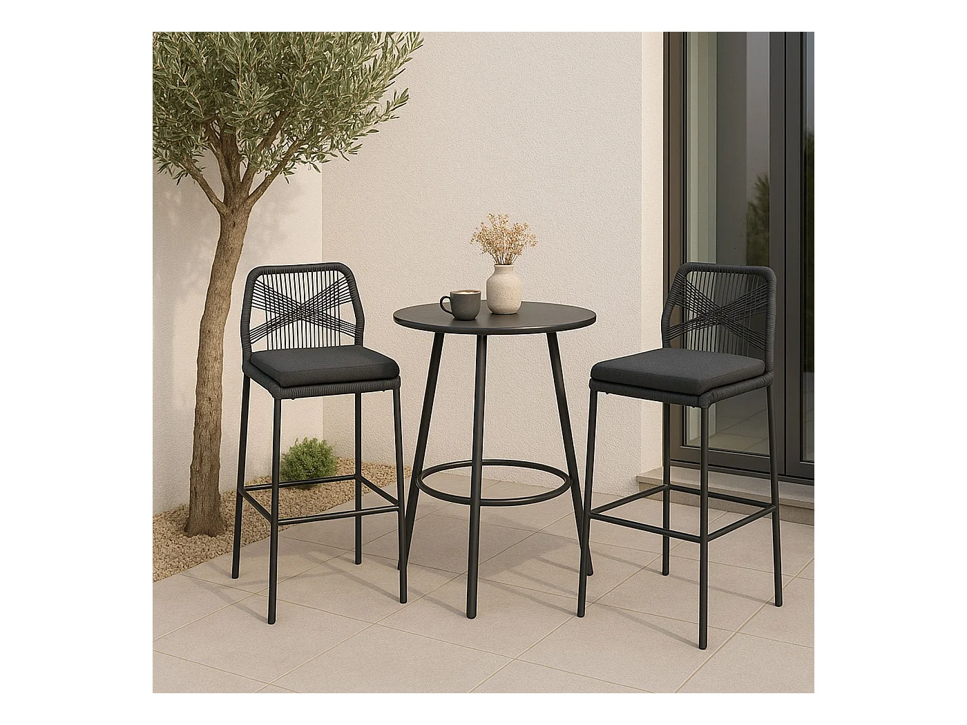 Barhocker MCW-O21 (2er-Set), Anthrazit, Kissen dunkelgrau