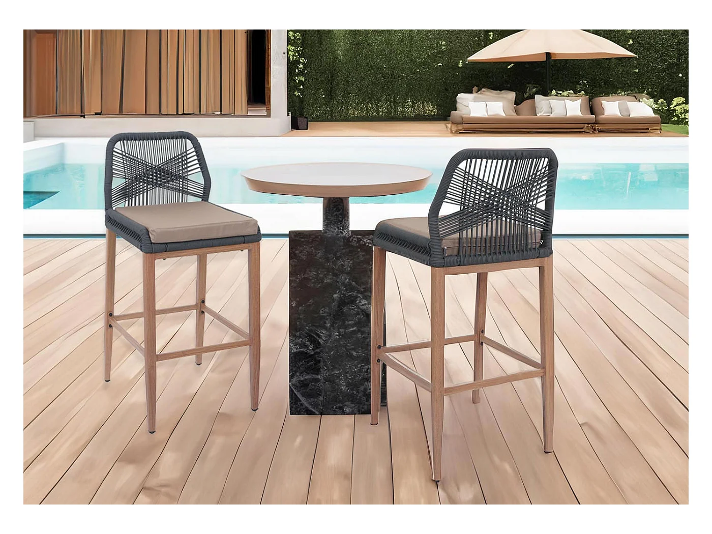 Barhocker MCW-O21 (2er-Set), Anthrazit, Kissen taupe