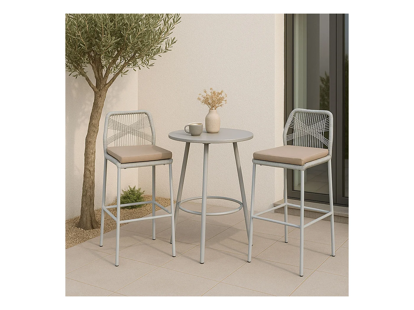 Barhocker MCW-O21 (2er-Set), Hellgrau, Kissen taupe