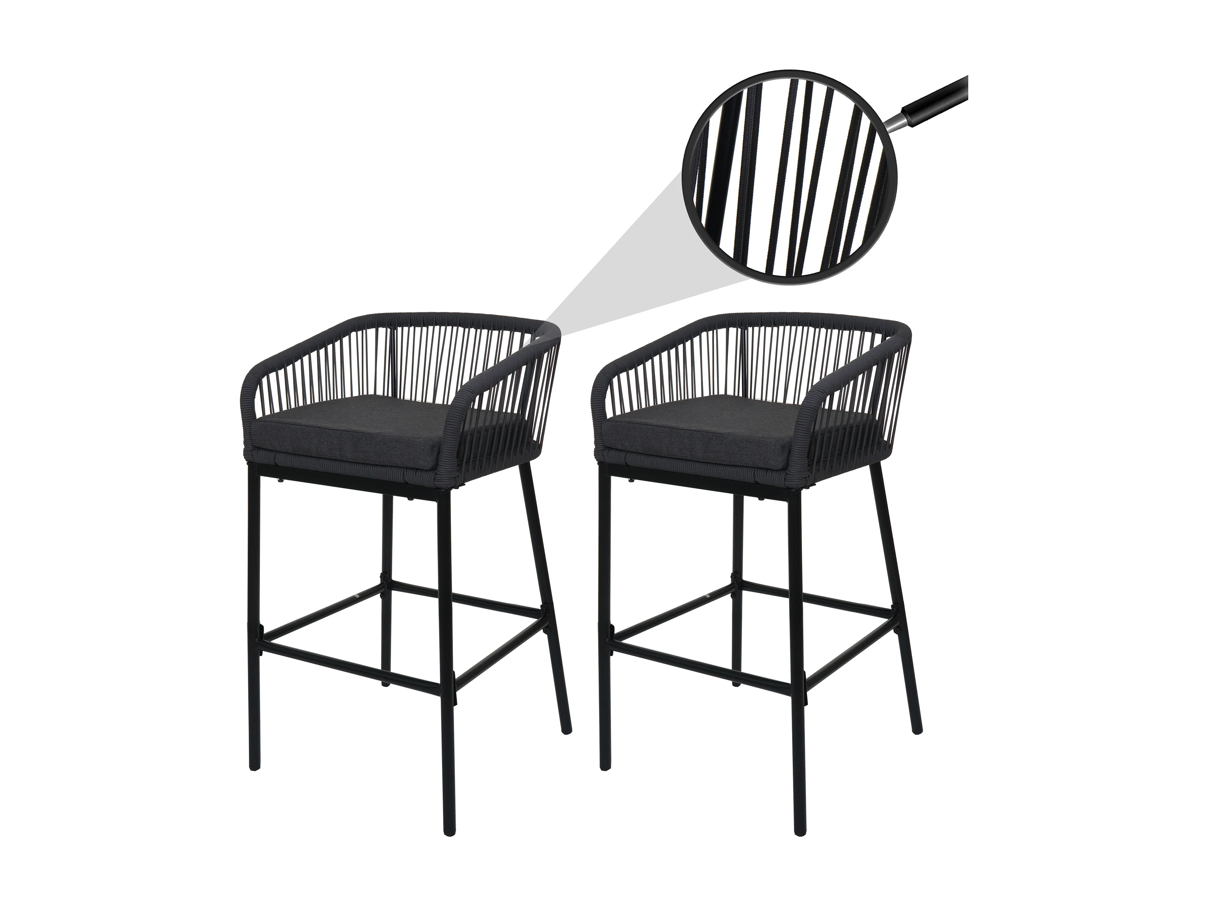 Barhocker MCW-O22 (2er-Set), Anthrazit, Kissen dunkelgrau