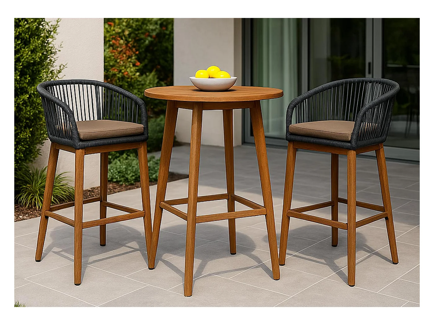 Barhocker MCW-O22 (2er-Set), Anthrazit, Kissen taupe