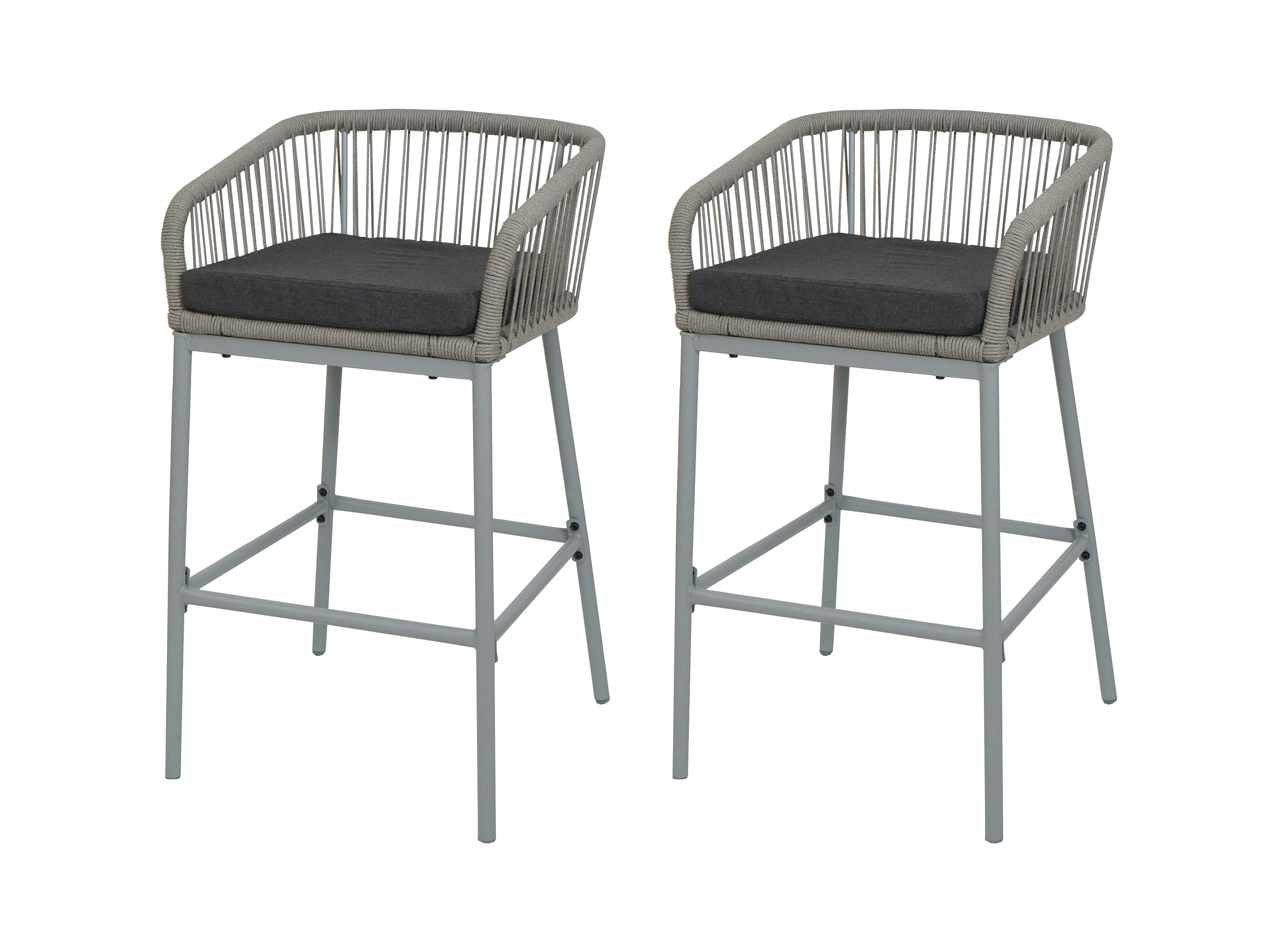 Barhocker MCW-O22 (2er-Set), Hellgrau, Kissen dunkelgrau