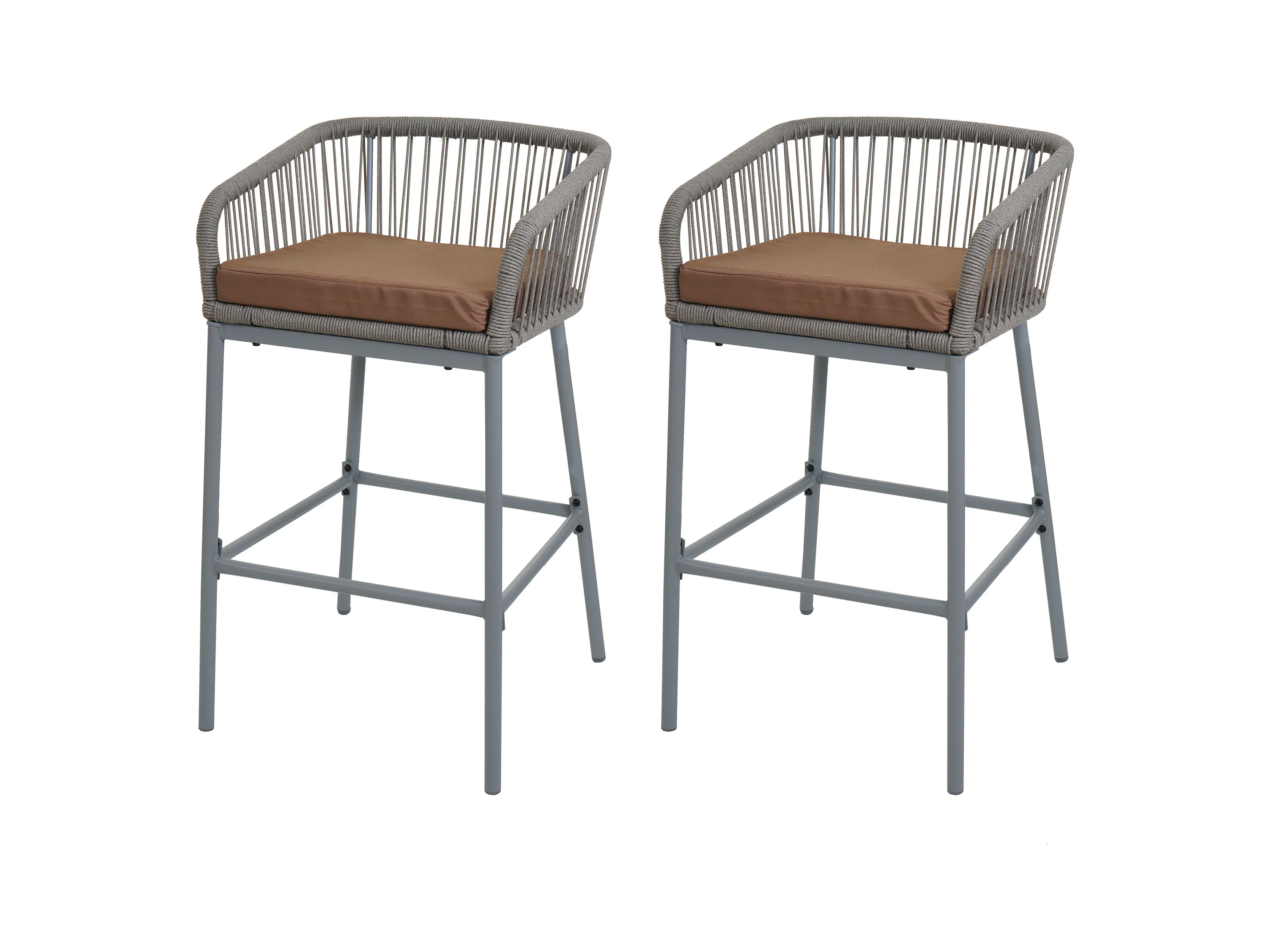 Barhocker MCW-O22 (2er-Set), Hellgrau, Kissen taupe