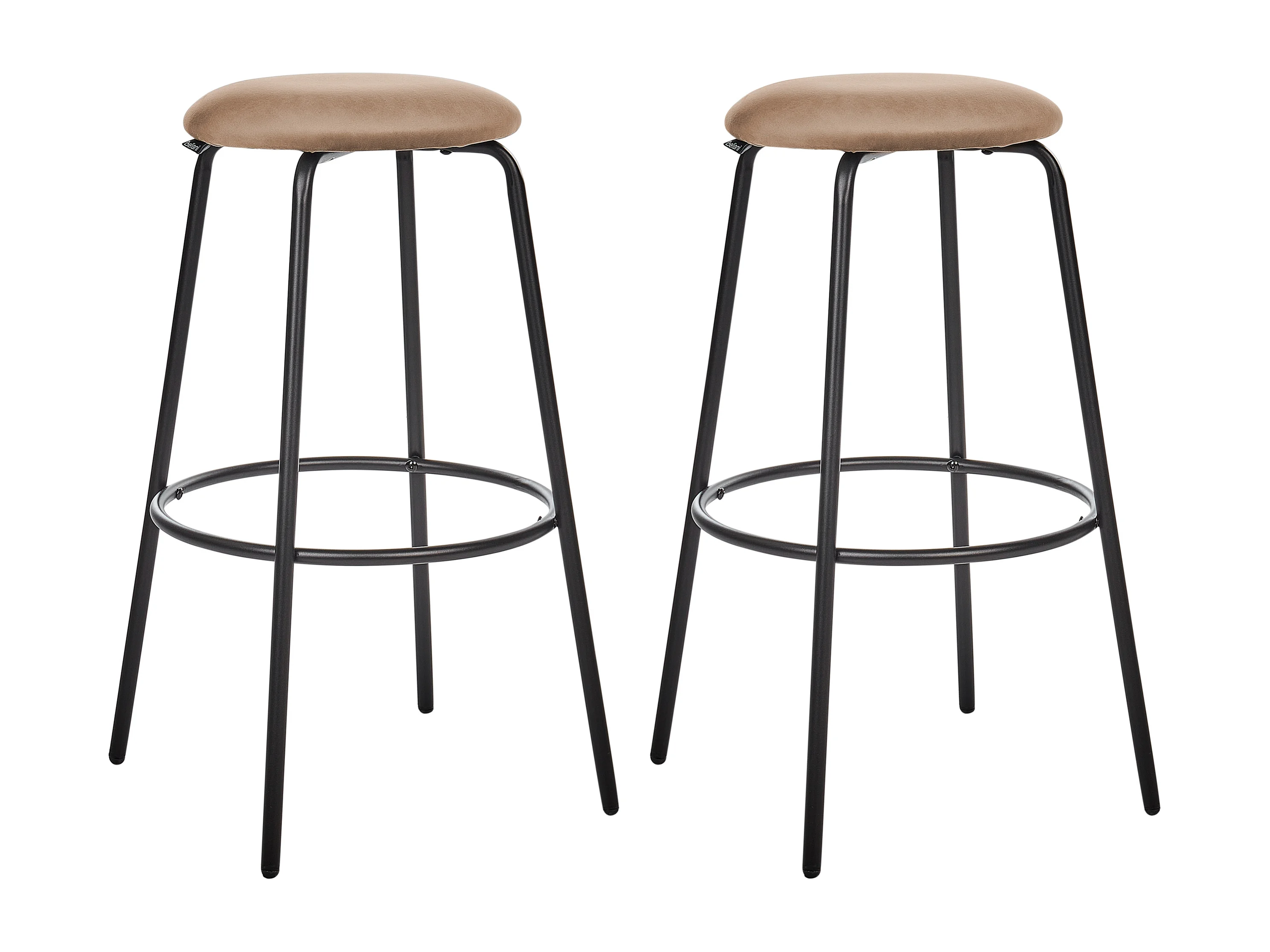 Barhocker 2er Set Samtstoff braun ohne Lehne mit Fußstützen Retro Design Morton