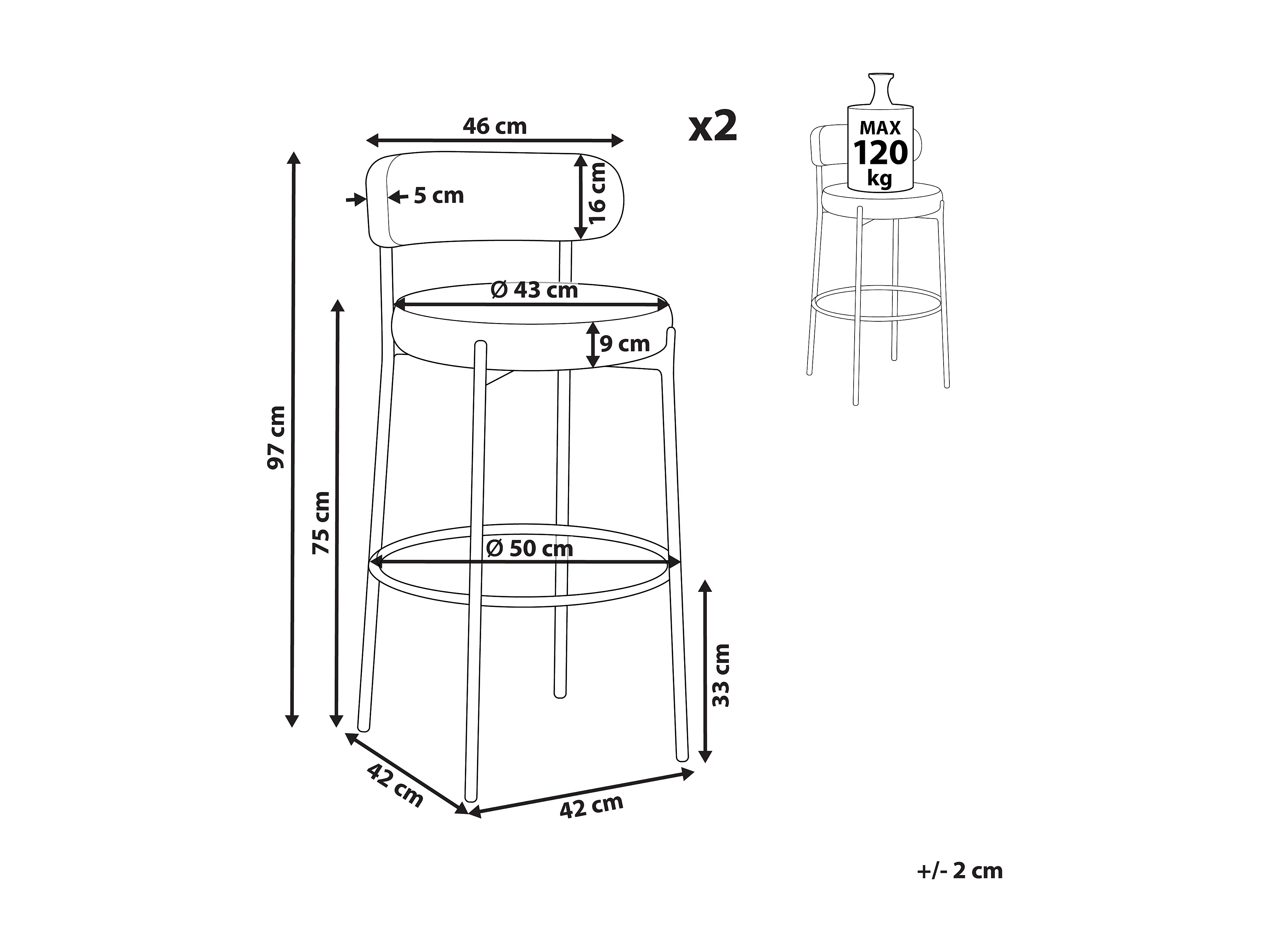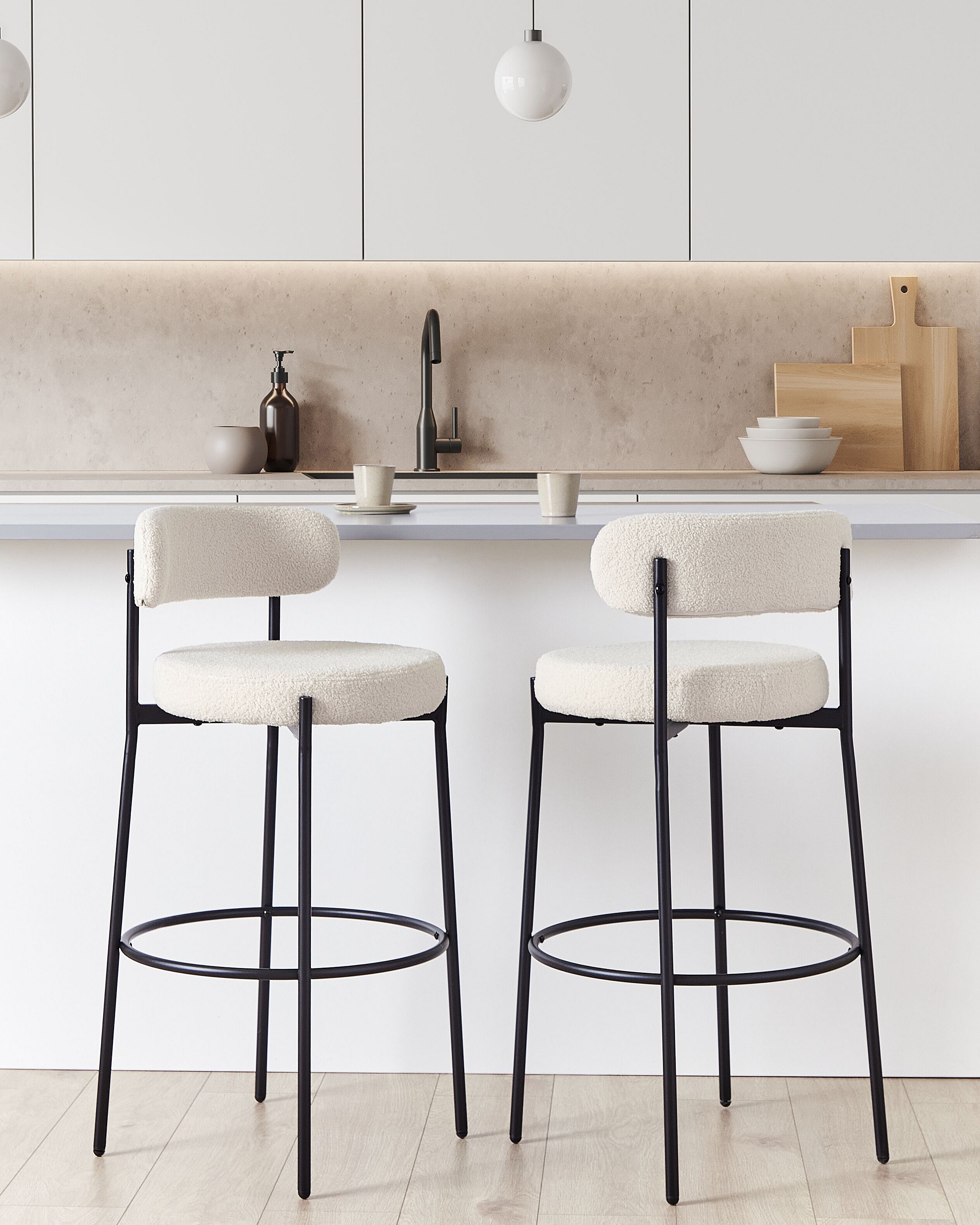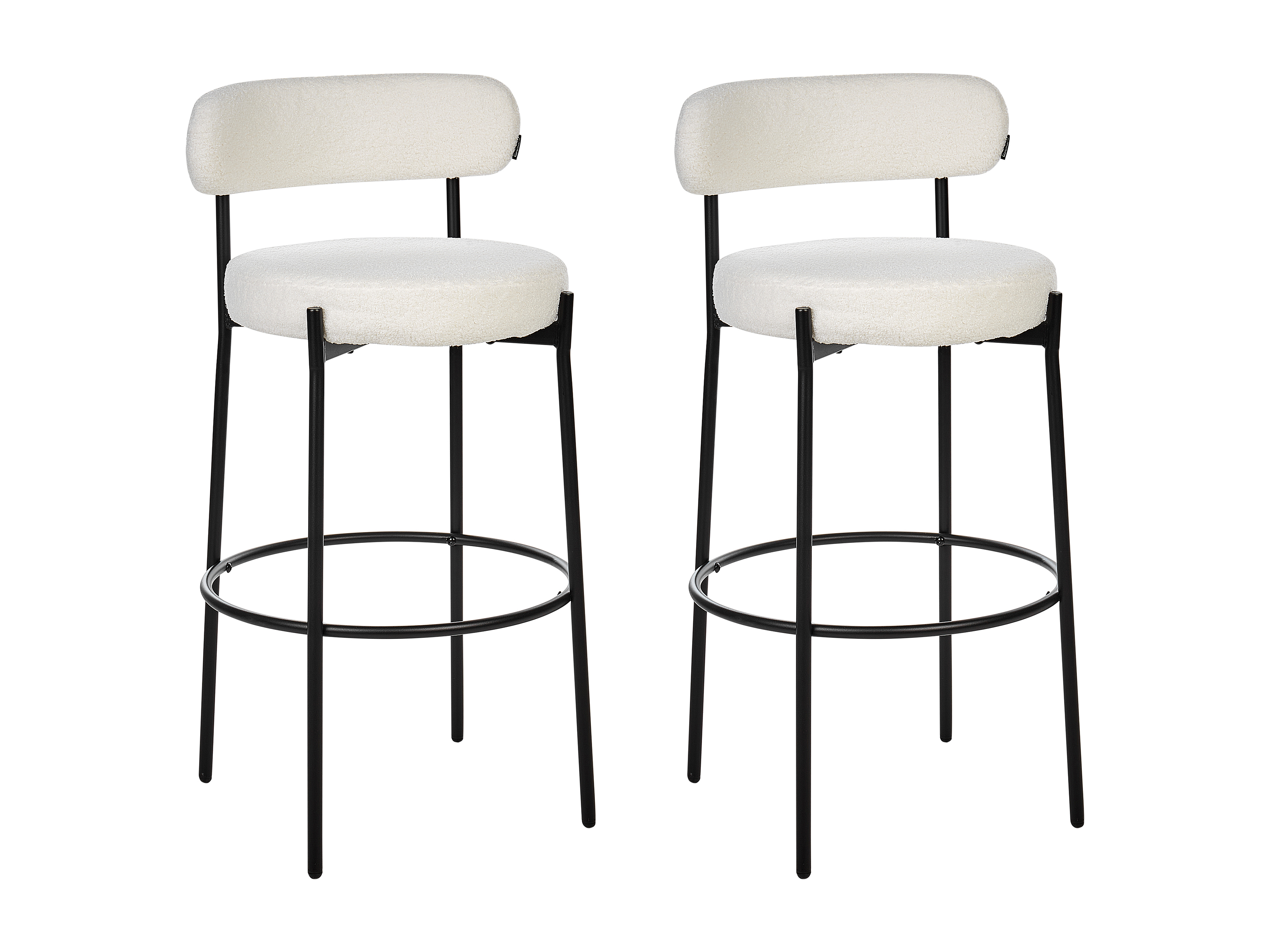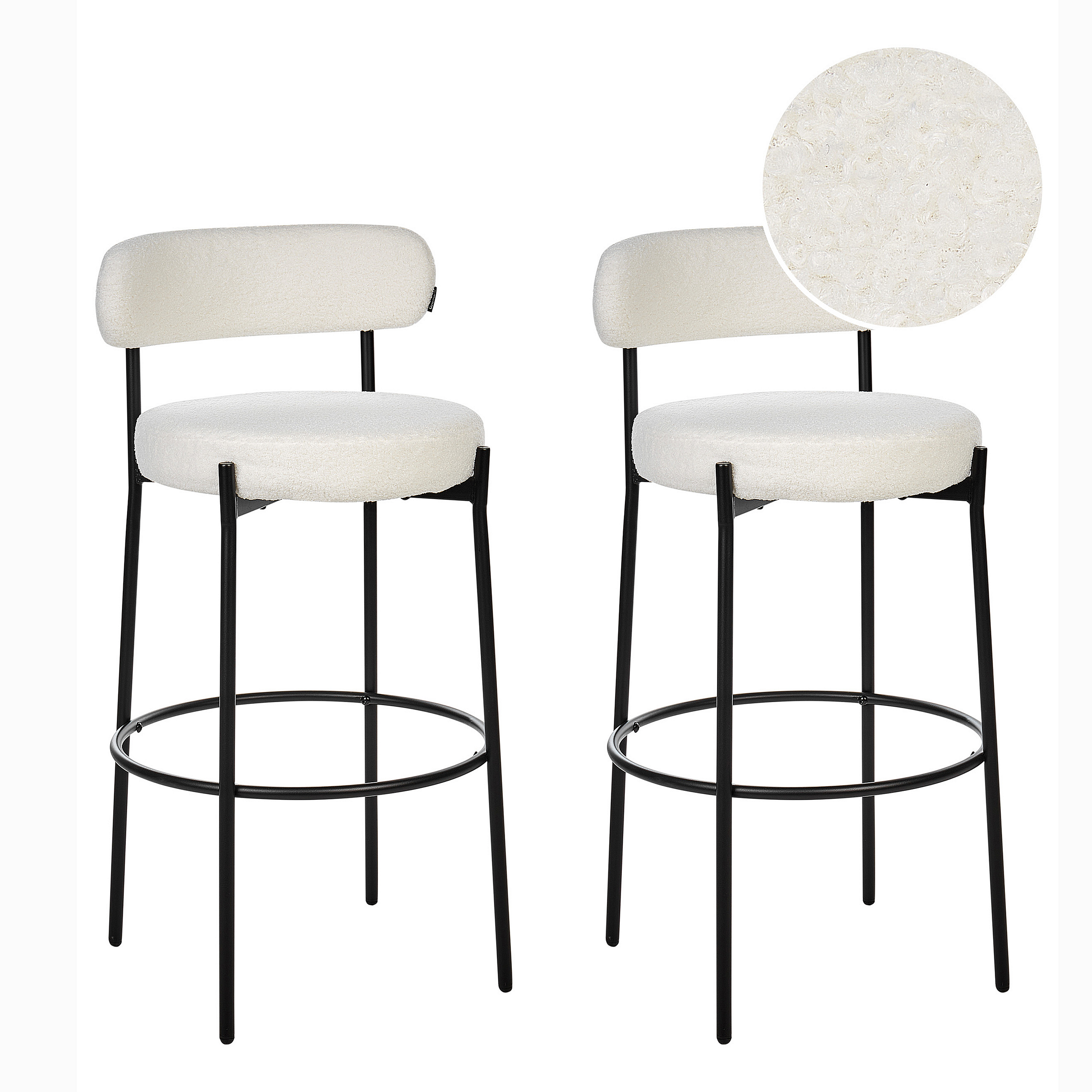 Barstuhl 2er Set Bouclé / Metall Weiß mit Lehne Fußstützen modern Allison