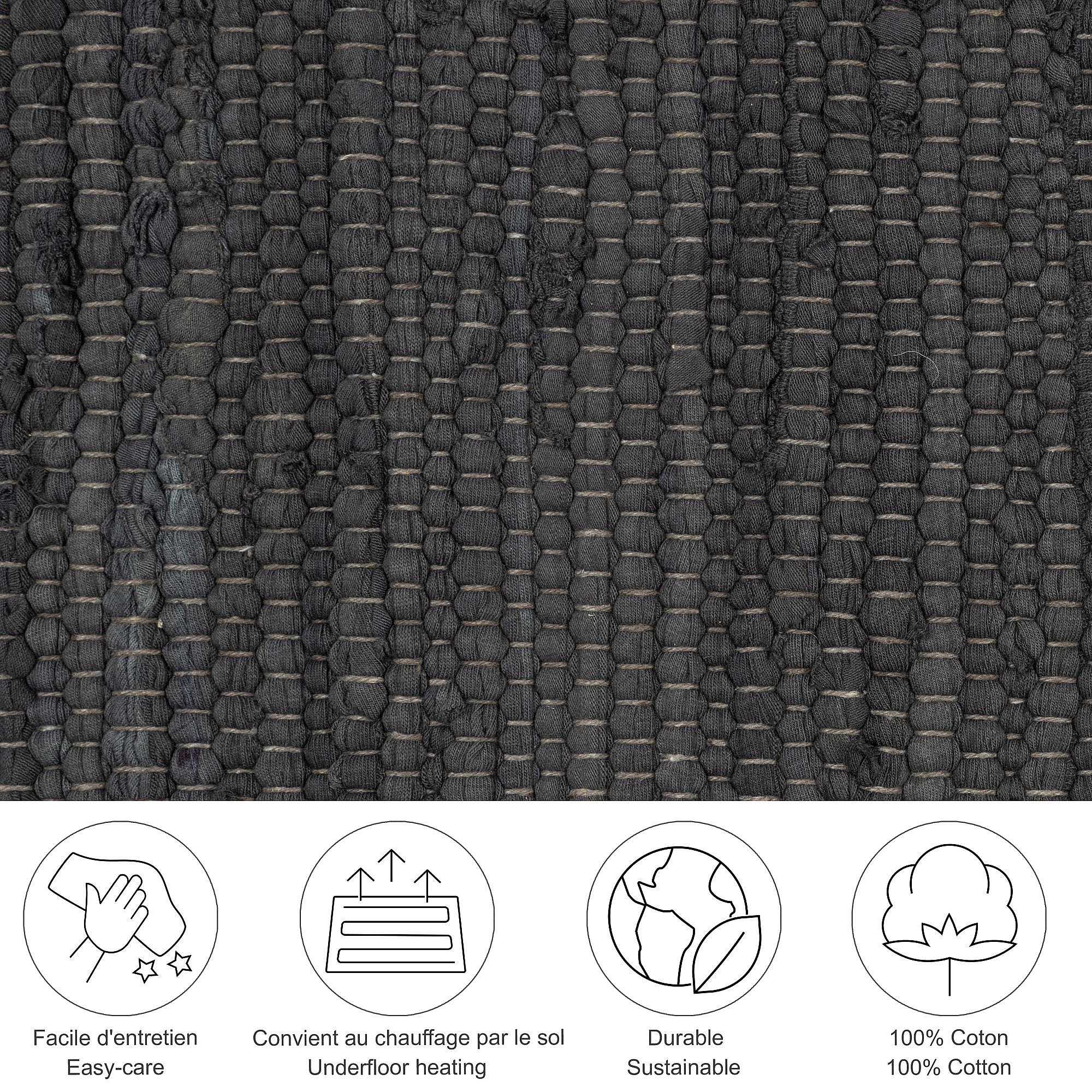 Baumwollteppich handgewebt und wendbar 160x230 cm Anthrazit Happy Cotton