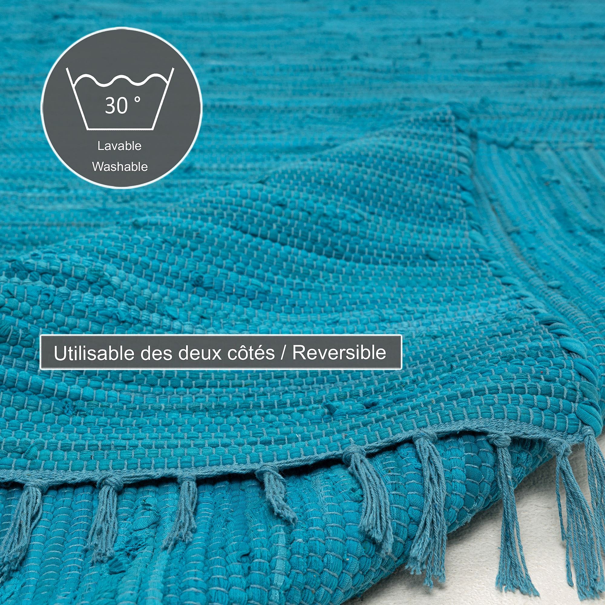 Baumwollteppich handgewebt und wendbar 160x230 cm Türkis Happy Cotton