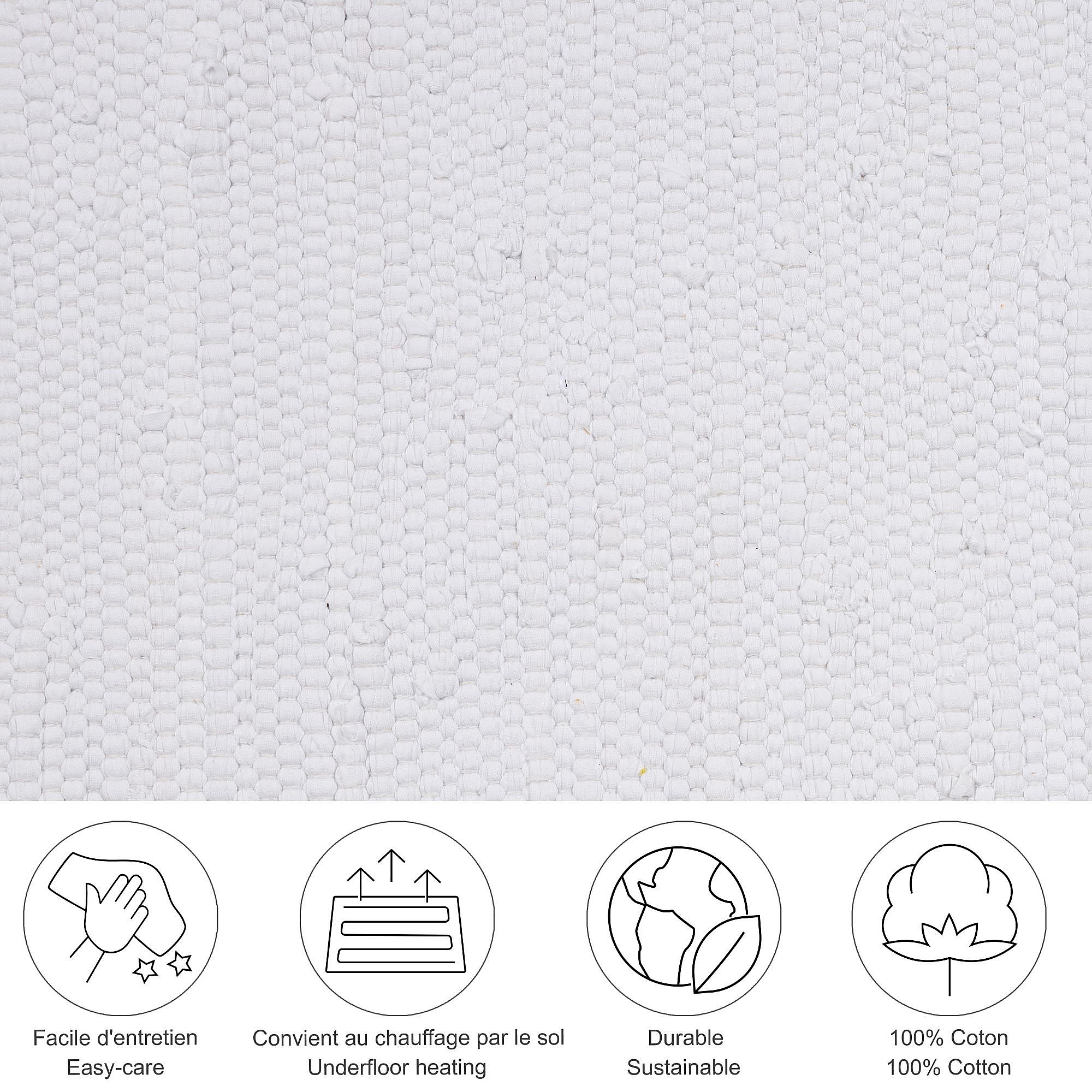 Baumwollteppich handgewebt und wendbar 70x140 cm Weiß Happy Cotton