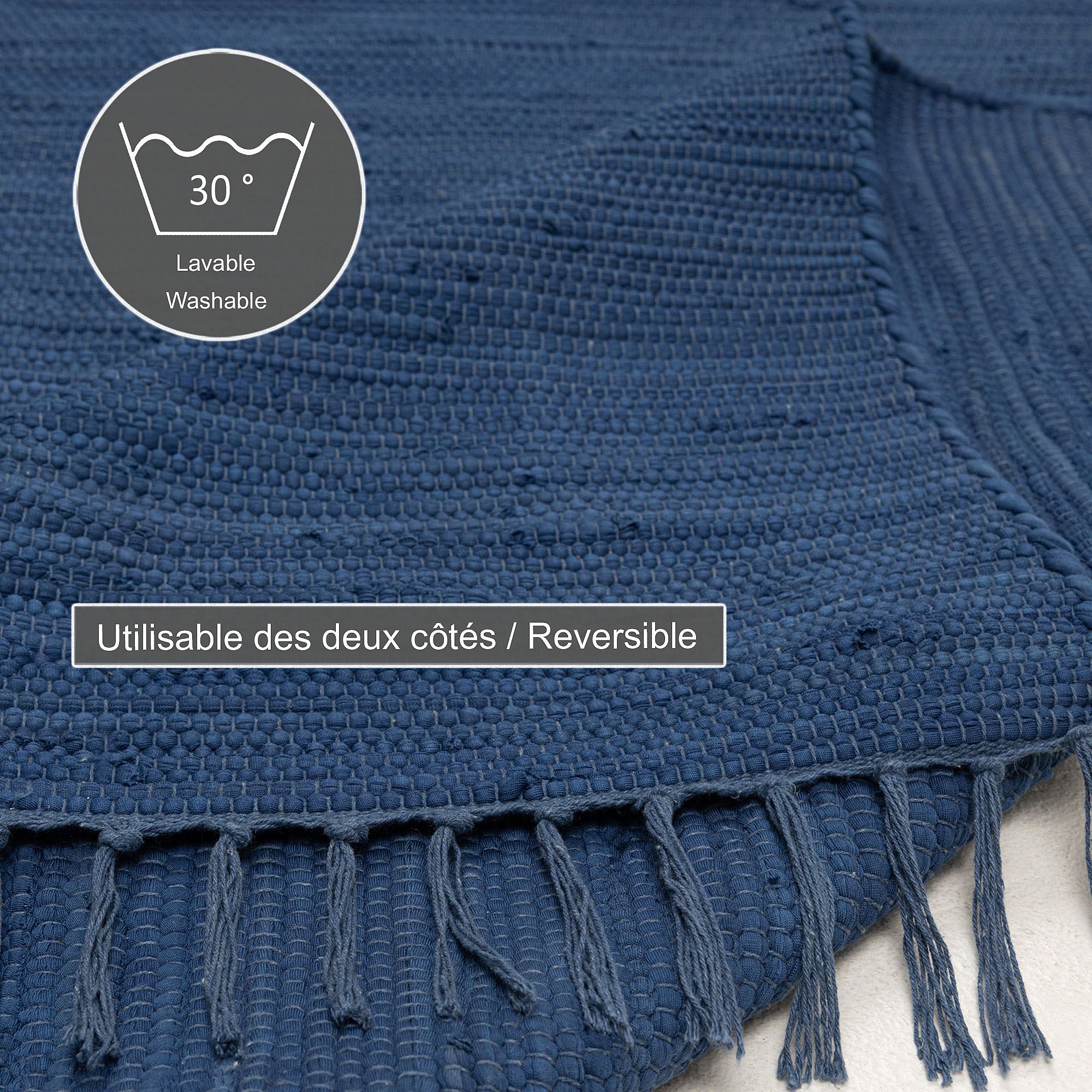 Baumwollteppich handgewebt und wendbar 90x160 cm Blau Happy Cotton