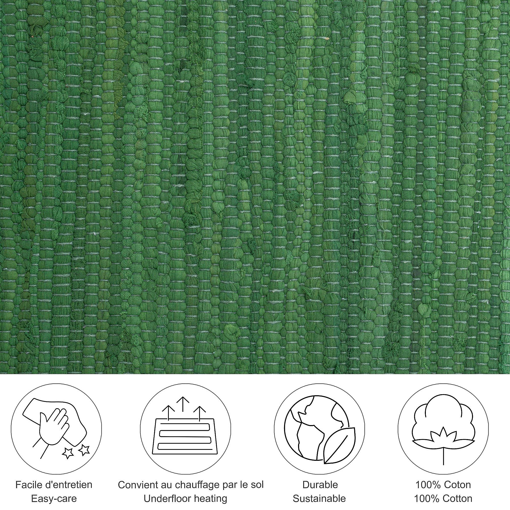Baumwollteppich handgewebt und wendbar 90x160 cm Dunkelgrün Happy Cotton