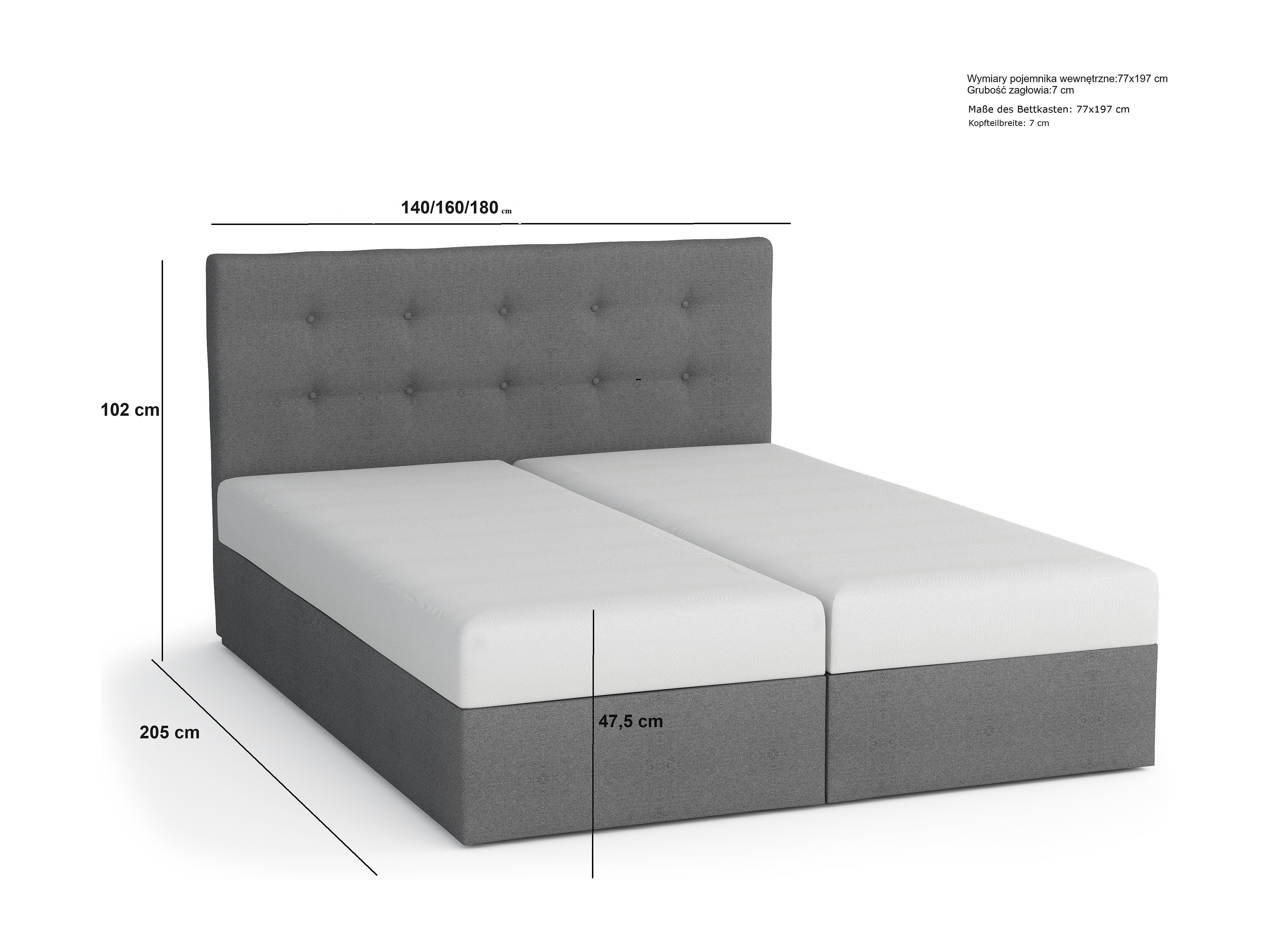 BEDANTE Boxspringbett DUO 1 140x200 Cosmic 100 Bett Bettkasten Ehebett Hotelbett Topper Matratze Schlafzimmer Stauraum