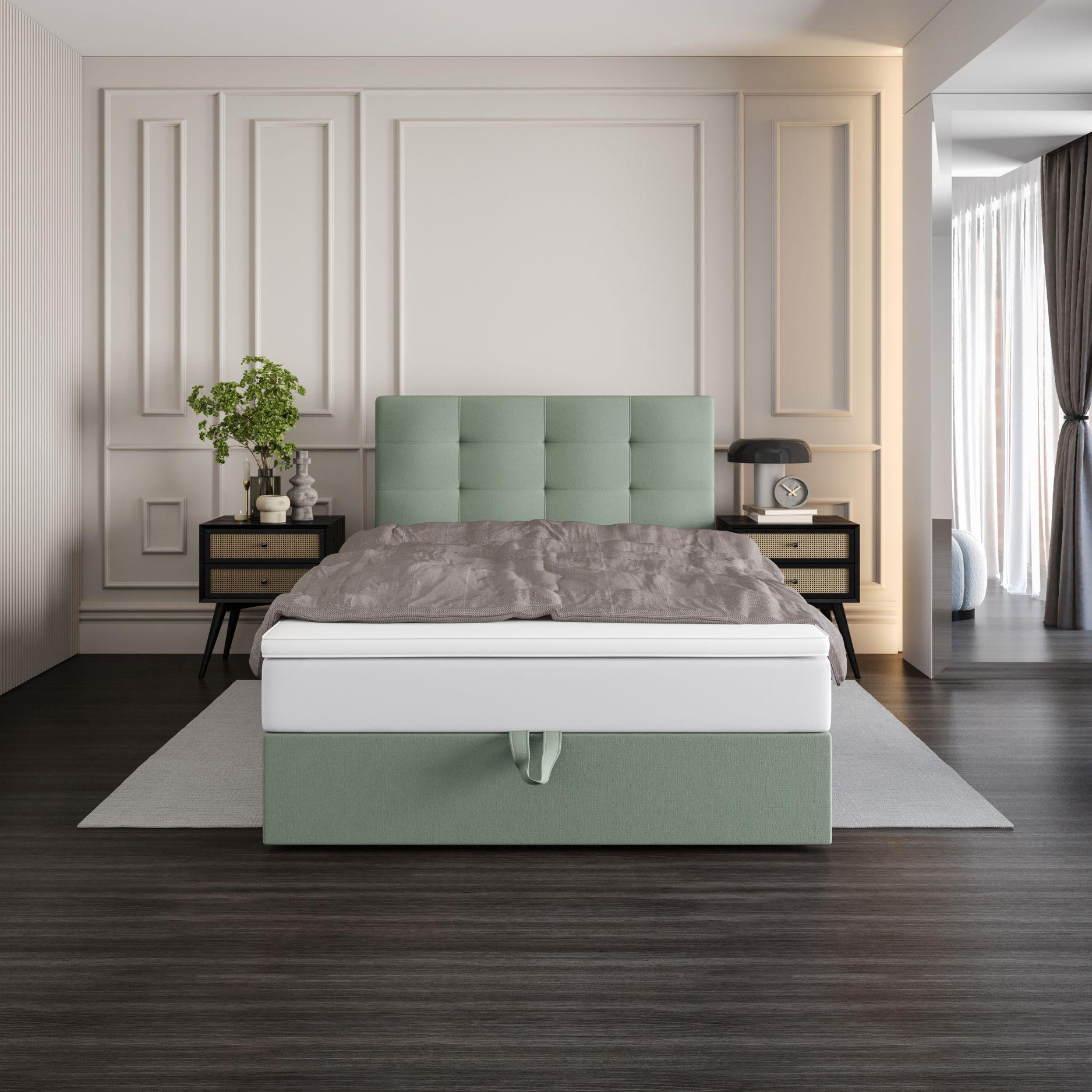 BEDANTE Boxspringbett DUO 1 80x200 Cosmic 16 Grün Bett Bettkasten Ehebett Hotelbett Topper Matratze Schlafzimmer Stauraum