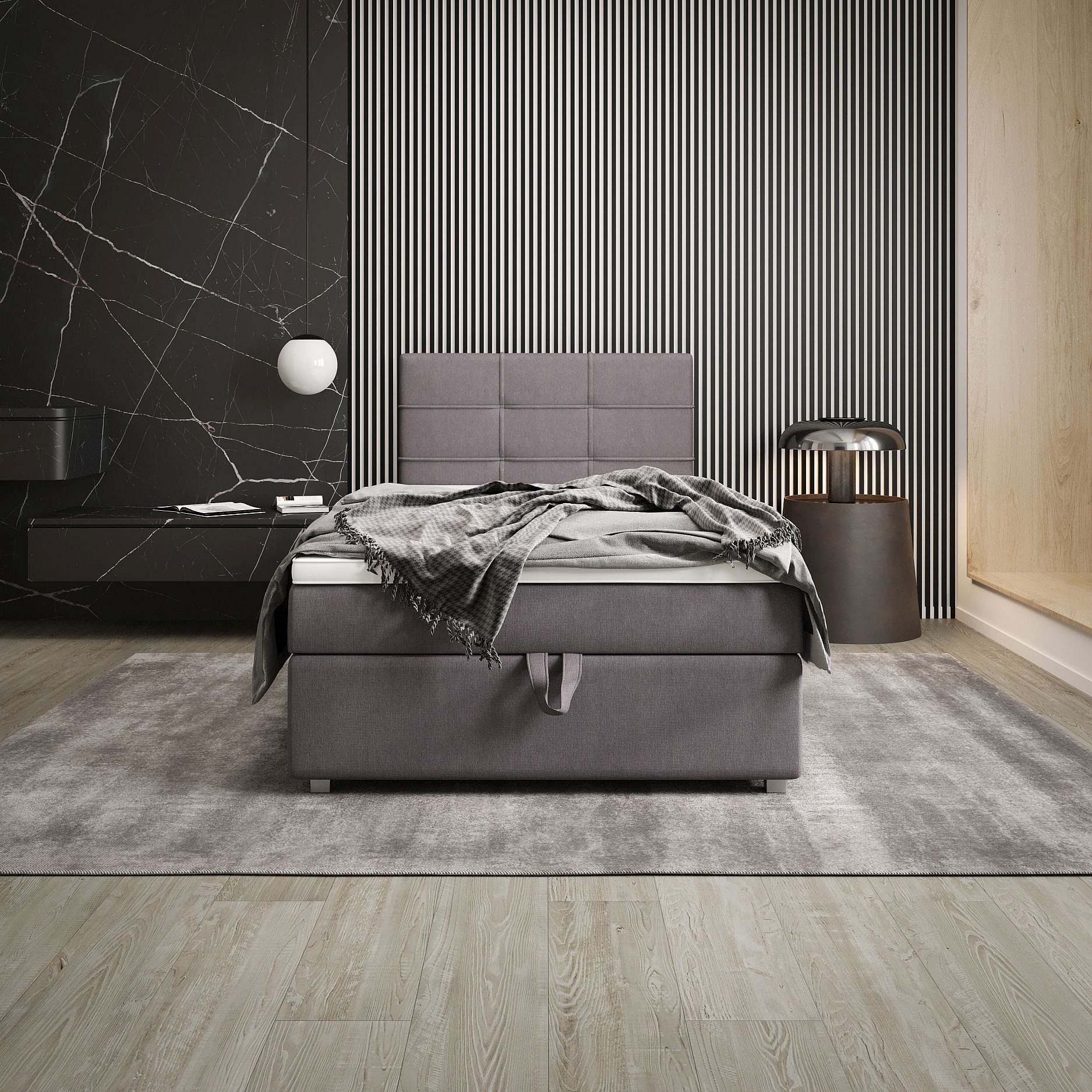 BEDANTE Boxspringbett FADO 22 80x200 Cosmic 160 Hellgrau Bett Bettkasten Einzellbett Hotelbett Topper Matratze Schlafzimmer Stauraum