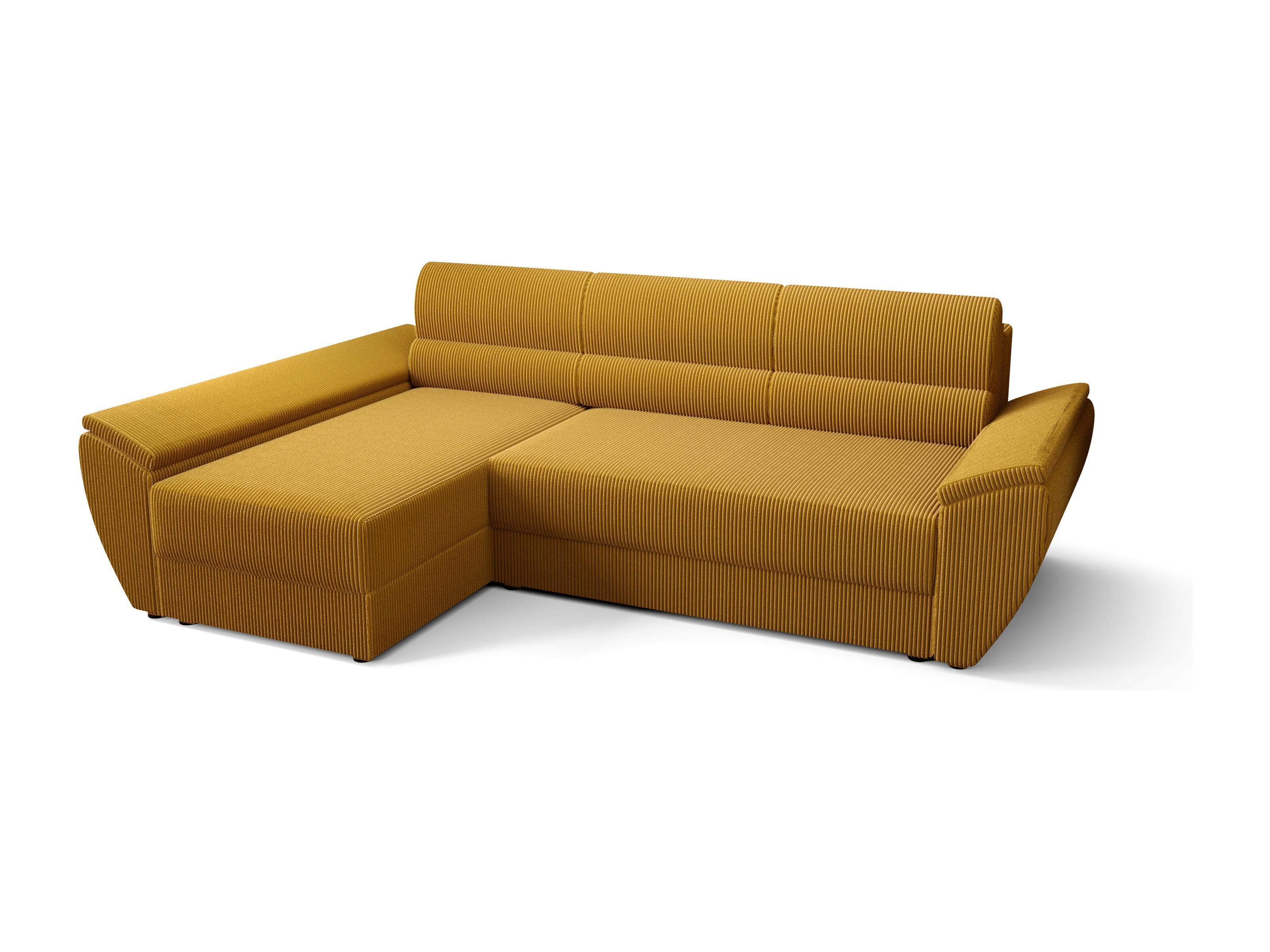BEDANTE Ecksofa L REBI L3 Poso 01 Links mit Schlaffunktion,Senfton, L-Form, Sofa mit Stauraum, Bettkasten, Wohnzimmersofa, Couch, Sofa, Bettsofa