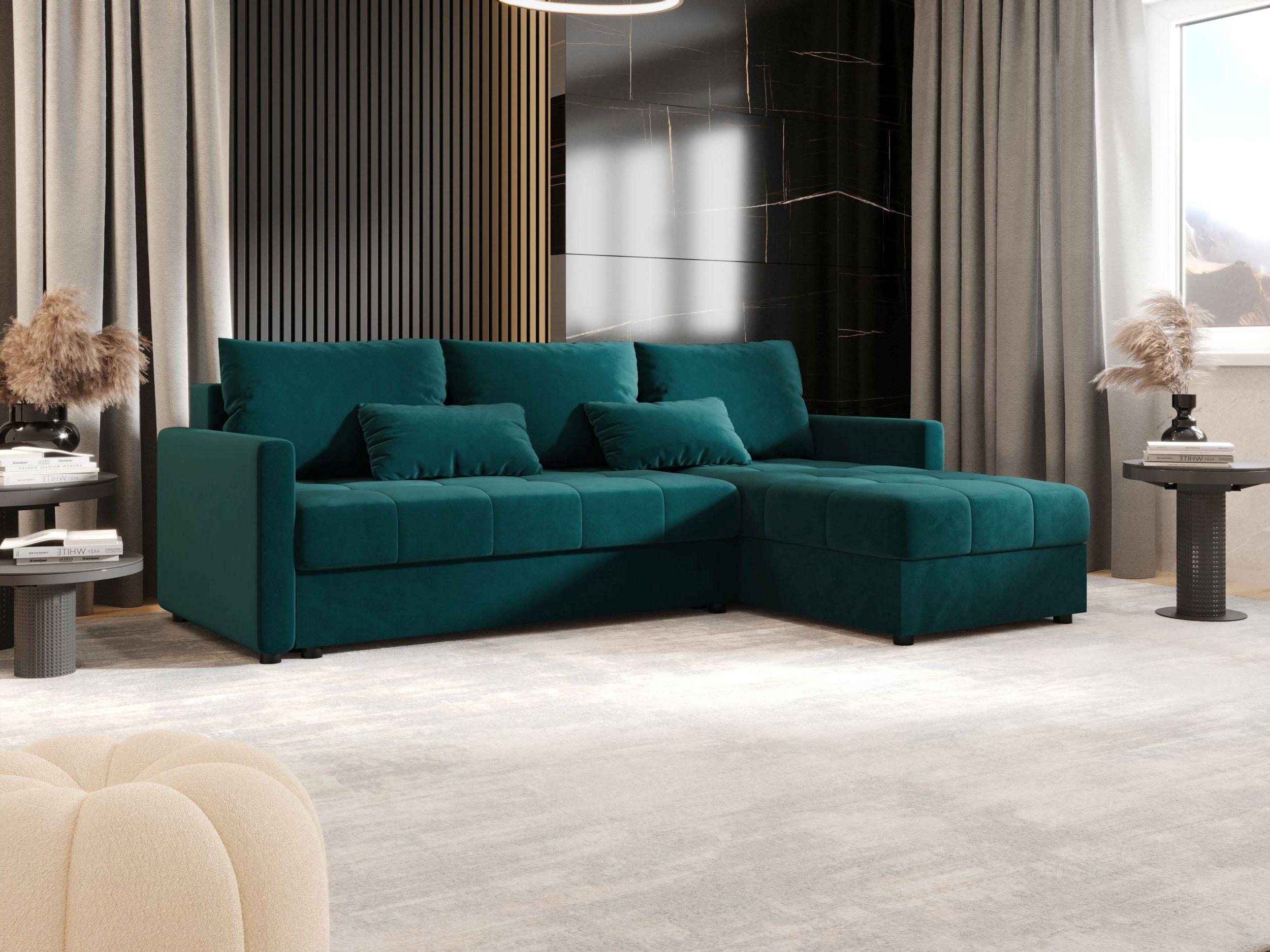 BEDANTE Ecksofa MOS L BIS Itaka 39 Türkis Rechts mit Schlaffunktion L-Form Sofa mit Stauraum Bettkasten Wohnzimmersofa Couch Sofa Bettsofa Bettkasten Bettcouch