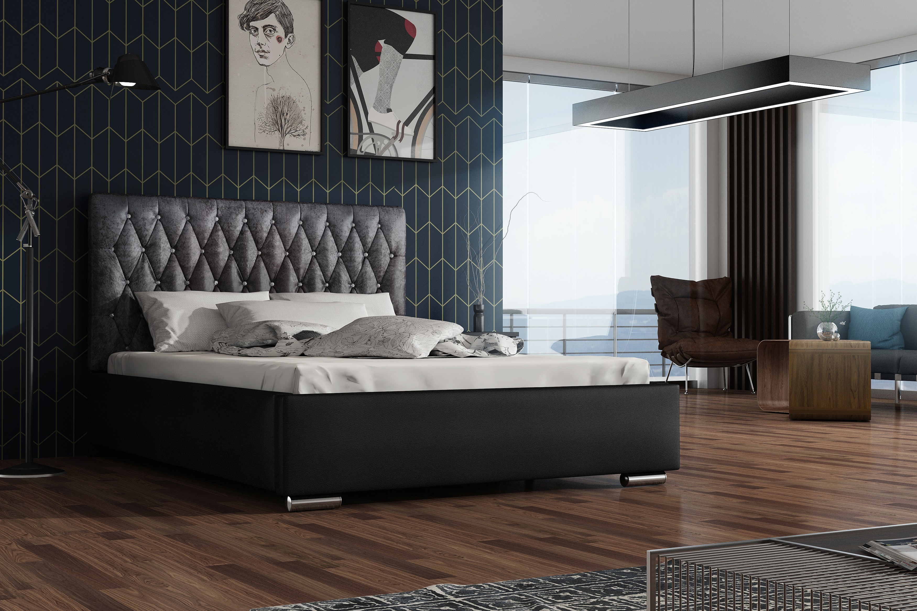 Bedante Polsterbett SIENA 180x200cm Einzellbett, Bett, Bettkasten, Schlafzimmer, Stauraum, Kontinentalbett, Boxspringbett, Chrome, Glitz