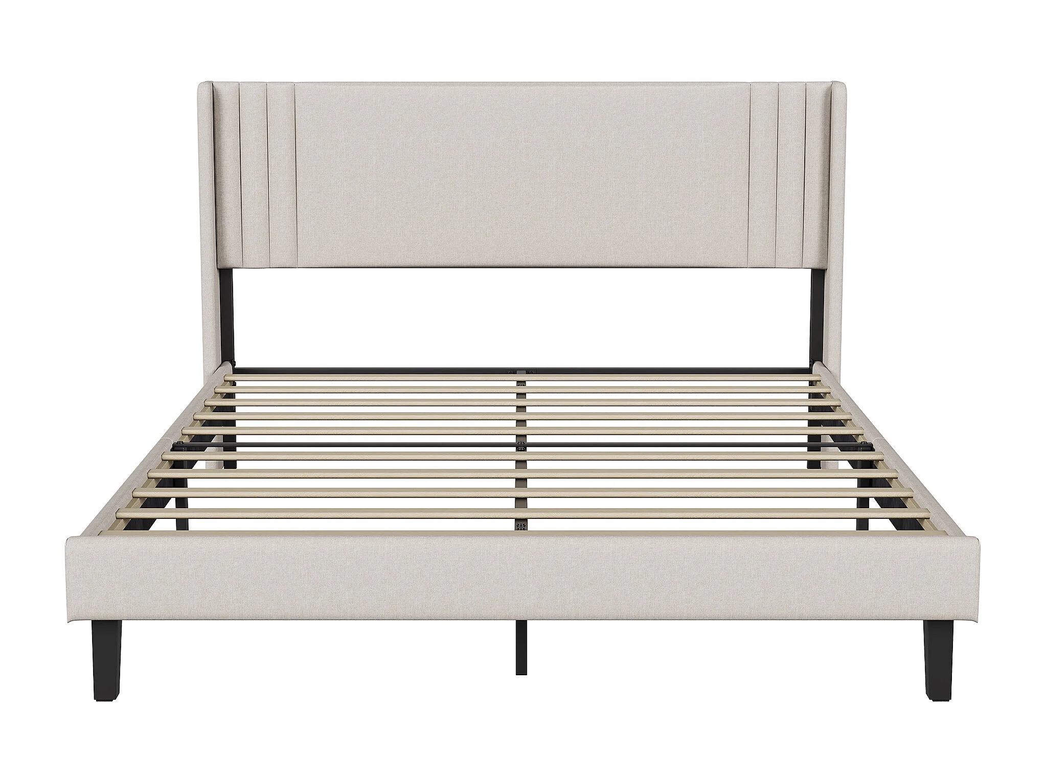 Beige Leinenbett (140 x 200 cm), modernes gepolstertes Kopfteil, stabiler Lattenrost, Belastbarkeit bis 363 kg, schnelle Montage
